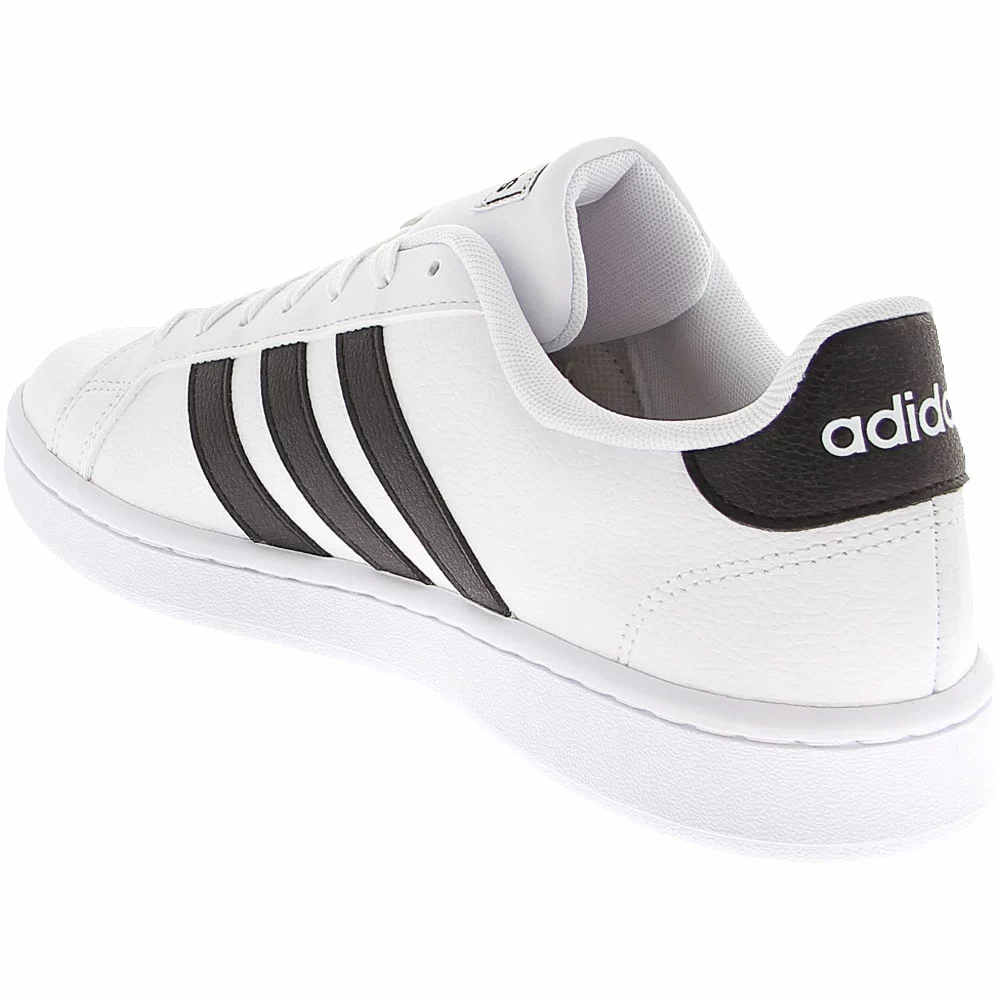 Adidas Grand Court Women’s Life Style Shoes. You will love having all of the benefits of the classic Adidas women’s lifestyle athletic shoes without all the bulk in this updated version. Clean lines and sleek styling are accented by the classic Adidas 3-Stripes in black against a crisp white synthetic leather upper. A stitched-on rubber outsole provides grip on most surfaces. The Cloudfoam Comfort sockliner and padded collar offer comfortable wear all day and the adjustable lace closure gives a custom fit every time.