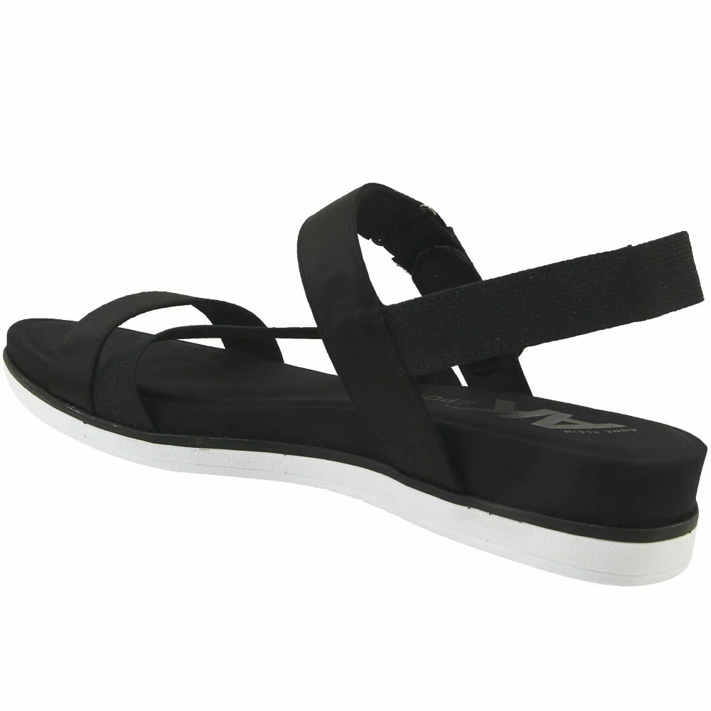 Anne Klein Nolita2 Women’s Sandals. Light and airy, these women’s sandals are the perfect choice for beach gatherings and summer strolls. A sling back ankle strap with a hook and loop closure snugly wraps around your feet for an adequate hold. An open round-toe silhouette gives ample room for your feet to enjoy the sunshine. Whether climbing or simply standing, the textile lining and insole is durable and comfortable.