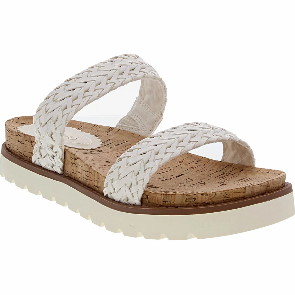 As you head out for a day or evening of summer fun, wear these womens sandals to take your ensemble up a notch. Their simple style is revved up with faux-leather braided straps that have a chic yet sophisticated vibe. These slip-on sandals also provide needed comfort to help you focus on making memories. They have a cork footbed with a smooth, breathable lining and a lightweight rubber outsole designed for traction.