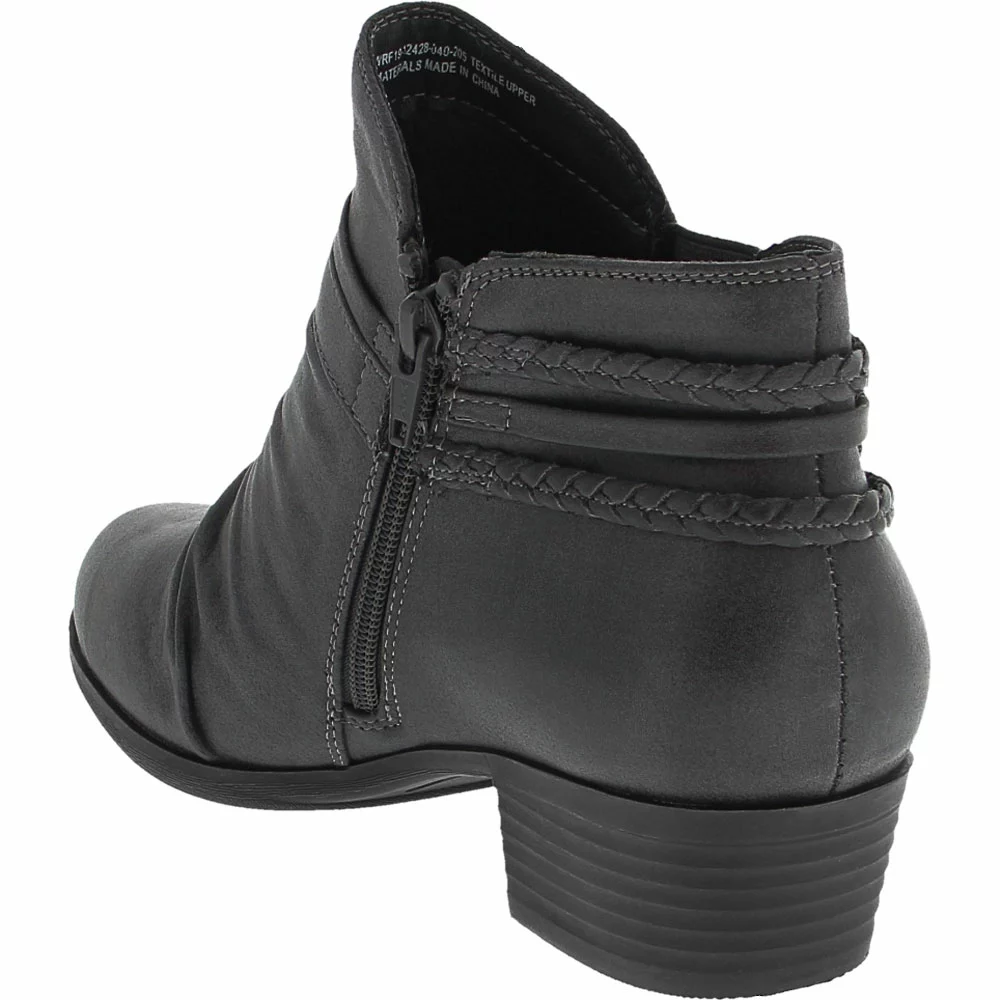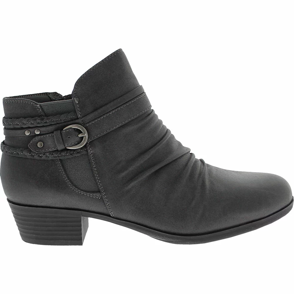 Wear.Ever. by BareTraps Nobalee Ankle Boots – Womens. BareTraps Nobalee Ankle Boots are womens ankle boots that are comfortable and stylish. With synthetic uppers, stacked heels, ruched fronts, braided accents, novelty buckles and strappy back details, these boots can be worn all day long with denim, leggings, or any other skinnies. They also feature goring details and inside zip closures. These statement boots dress up your casual wear.