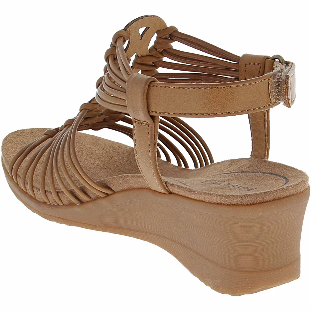 BareTraps Taren Sandals – Womens. The fashionable BareTraps Taren sandals will easily makes any look more stylish. With a wedge heel, thin straps and laser-cut details, these womens sandals will have you looking as good as you feel. The insole cushions your feet while the molded footbed provides support. The outsole gives traction to keep you steady. They have a slip-on design for easy on and off and a hook and loop closure that adjusts to give you the perfect fit.