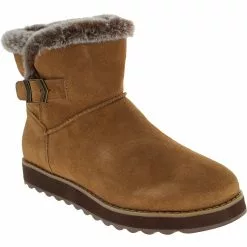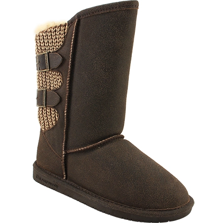 Bearpaw Boshie Women’s Winter Snow Boots. Give yourself the perfect blend of comfort, fashion and warmth with the Bearpaw Boshie comfort boots. These boots feature a suede upper that has a shaft of 10 inches in the front, and slightly shorter in the back. Knit details and buckles on the back give you the perfect amount of style. The lining is made of a wool blend while the footbed is made out of sheepskin. There is a Rubber outsole to give you the traction you need. Pull yourself into comfort and style in these boots.