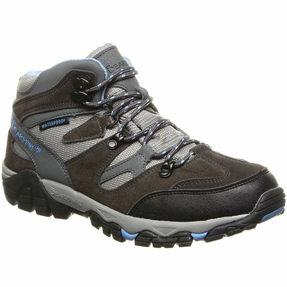 Bearpaw Corsica Women’s Hiking Boots. Tired of every adventure being rained out? Bearpaw’s Corsica women’s hiking boots can save your next outdoor excursion. These waterproof ankle boots have a feminine full bootie construction with colorful pink or blue detailing to match and are made with durable nylon, suede and rubber to help them last for a long time to come – no matter where your next hikes take you.