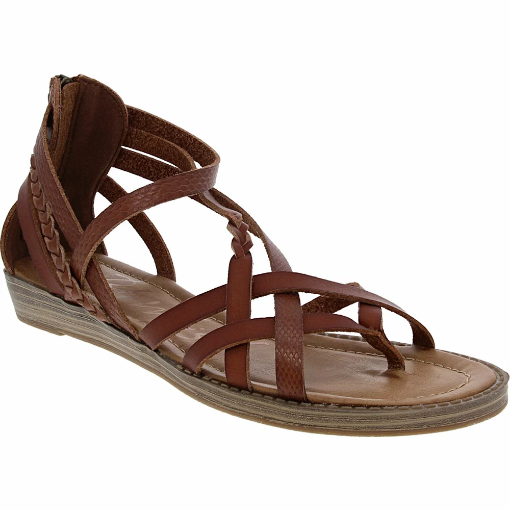 Looking stylish is effortless and comfortable with these womens sandals by Blowfish. Featuring a micro-wedge, they have faux-leather crisscrossed straps with a braided accent strap on the side. Part sandal and part flip-flop, they have a toe post for extra flair. As you enjoy the warm weather, they stay secure thanks to a zipper on the heel. These trendy sandals have a cushioned footbed with a breathable lining and a textured outsole for traction.