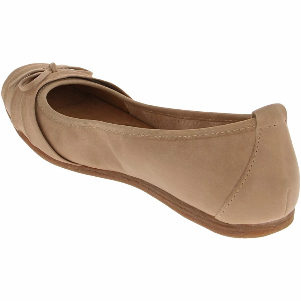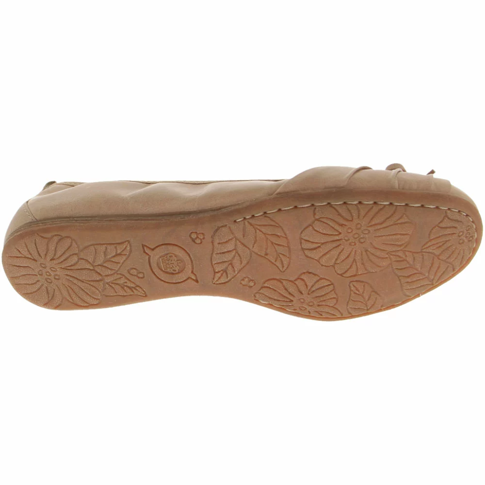 Born Chelan Slip On Women’s Casual Shoes. The Born Chelan is a classic ballet flat made with the highest quality full-grain leather stitched together using an Opanka handcrafted construction for optimal durability and flexibility while you walk. These womens casual shoes feature a natural tan colored exterior with a delicate bow decorating the toes. A cushioned insole provides extra comfort while the rubber outsole helps keep you safely on your feet.