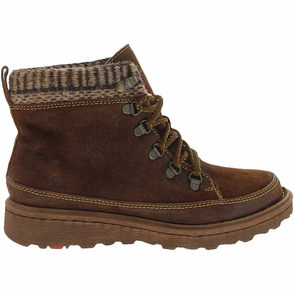 Born Orlene Casual Boots – Womens. If you are looking for a solid modern hiker, look no further than these womens casual boots. Designed with distressed suede and wool combination uppers, these boots are stylish enough for day-to-day wear, yet durable enough for an outdoor walk through the woods. The Born Orlene Boots have removable cushioned footbeds and micro-suede lining, keeping your feet cozy and comfortable wherever you go.