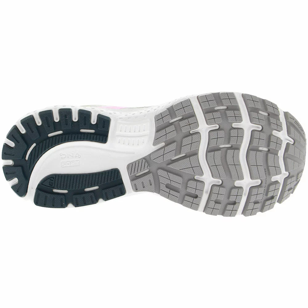 Brooks Ghost 13 Running Shoes – Womens. Get a smoother transition and superior cushioning with the modern design of these Brooks womens running shoes. The secret lies in the extended DNA LOFT, which now stretches from the heel to the forefoot for seamless movement through each stride. That same technology provides luxurious cushioning to reduce strain on your feet. The engineered mesh upper features strategic areas of structure and stretch to give you flexible, breathable comfort and a secure fit.