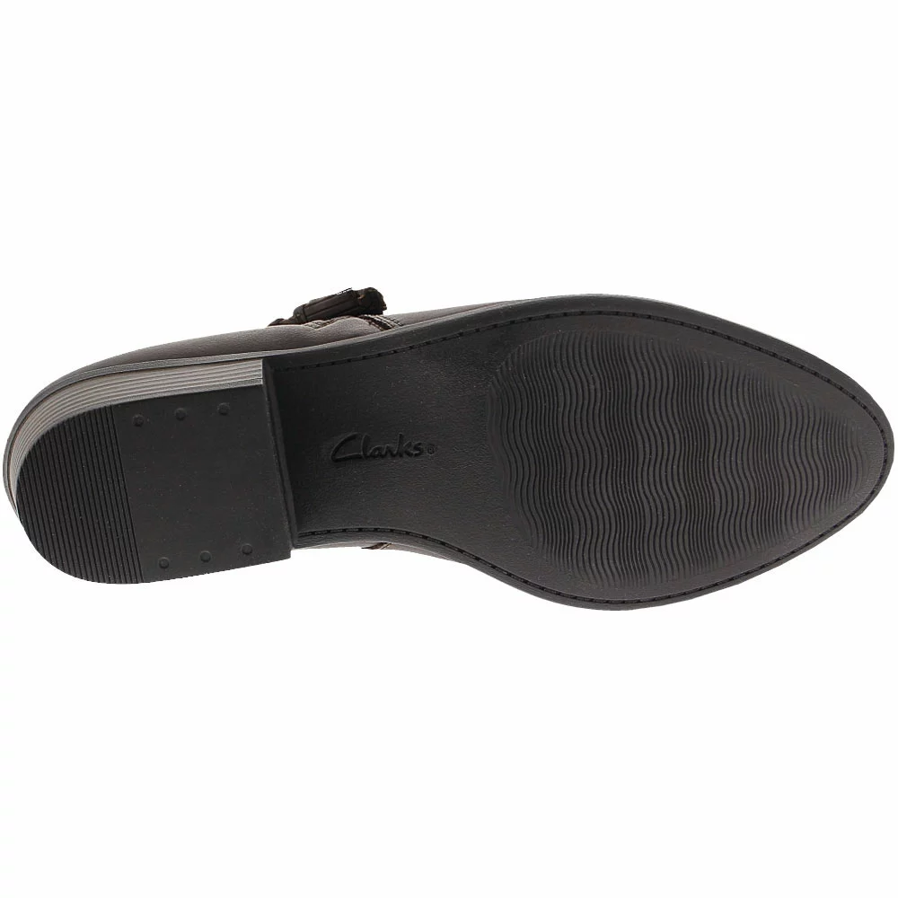 Clarks Addiy Teri Ankle Boots – Womens. Clarks Addiy Teri Ankle Boots – Womens are comfortable and fashionable ankle boots. These stacked heeled boots feature tassel trims and full-length zippers. Comfort comes from the brand’s Cushion Soft™ and an OrthoLite® footbed, including underfoot cushioning and a cushion pad at the heel. The outsole is made to provide grip and additional comfort for long walks. Keep it casual by pairing these boots with a skirt or denim.