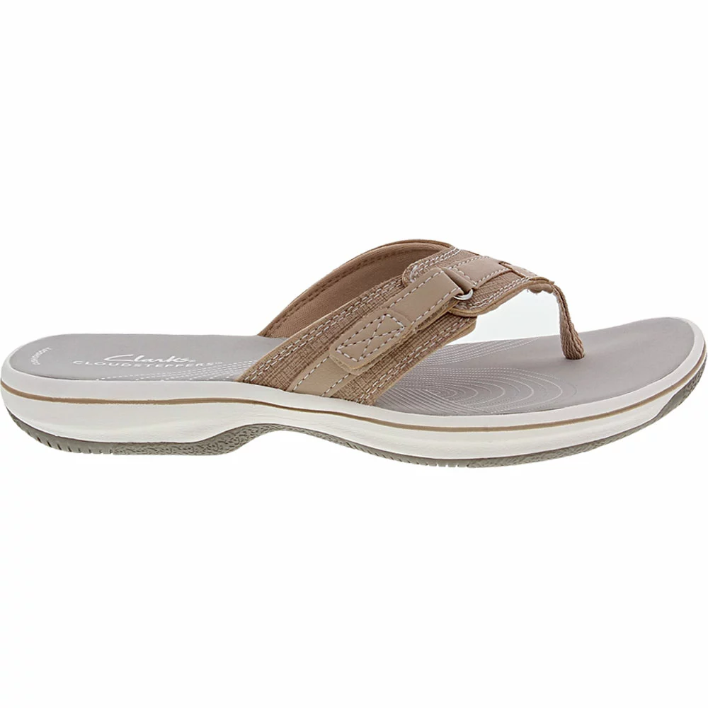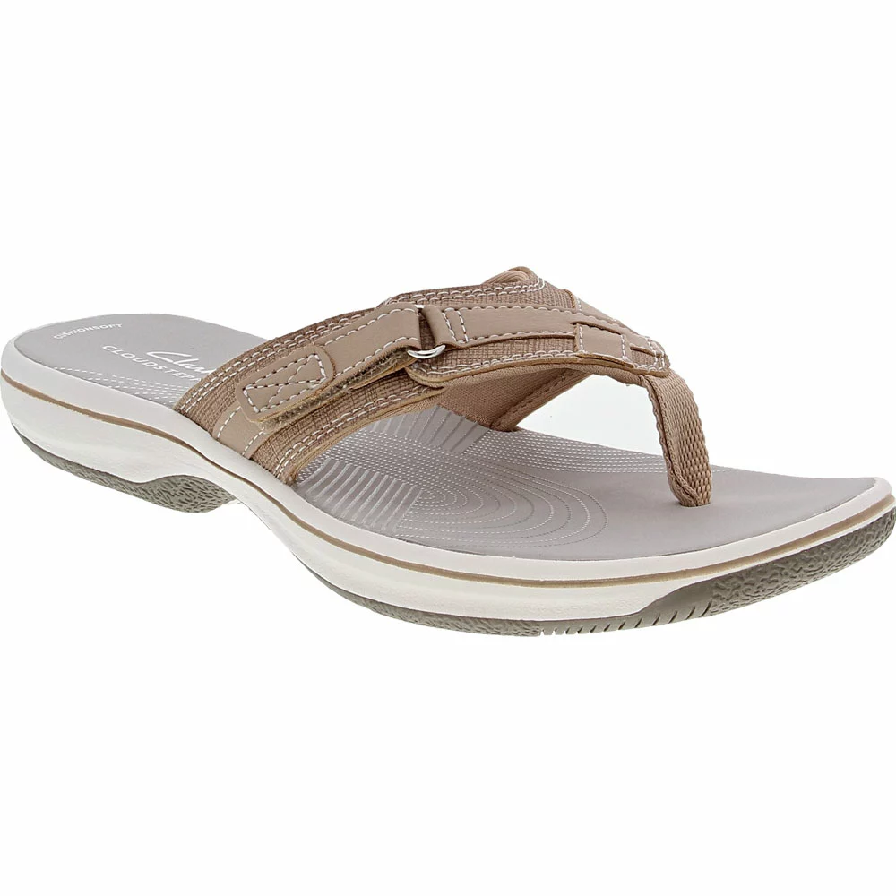 Conquer your beach days with these womens flip flop sandals. Crafted with Cloudsteppers™ technology, the Clarks Breeze Sea delivers all-day support. Its sleek silhouette exudes an effortless style that complements your entire summer wardrobe. Pair these breezy sandals easily with your favorite maxi dress, linen shorts, or bikini. Slide into a pair today and enjoy classic design without compromising your comfort.