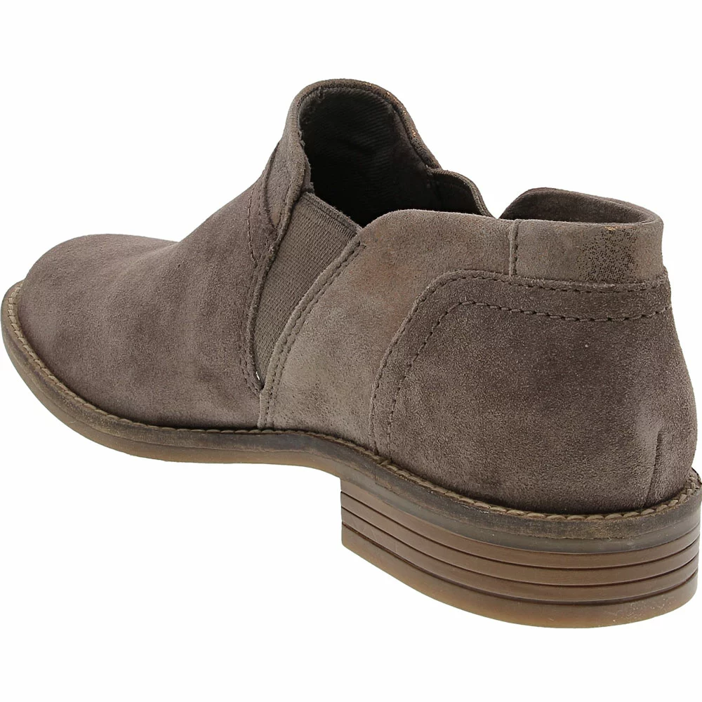 Clarks Camzin Mix Slip on Casual Shoes – Womens. These Western-inspired womens slip on casual shoes add style and flair to a range of ensembles. Designed for easy, comfortable wear, they have a sleek leather upper with stitching accents and elastic side gore panels for flexible wear. Feet are kept cushioned and comfortable thanks to a memory foam insole and moisture-wicking, antifungal lining. A subtle heel adds a touch of height while the durable outsole is designed for providing traction.