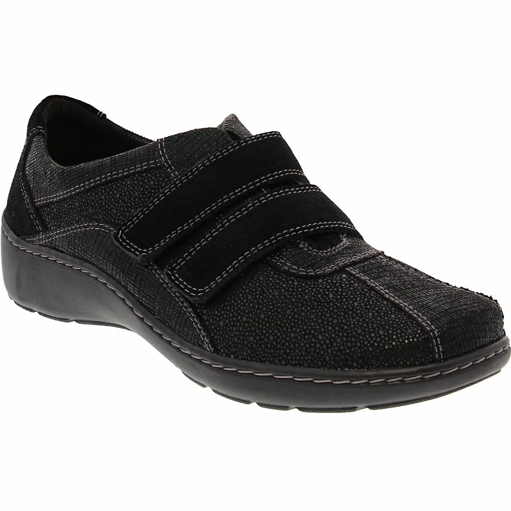 Clarks Cora Azalia Slip on Casual Shoes – Womens. Get the sporty style you love with a stylish flair wearing these womens slip on casual shoes. They have a leather and suede upper with subtle stitching and cutout accents that add to their charm. Easy to slip on, they have two adjustable straps across the forefoot for a custom fit. Designed for optimal comfort and support, they have a multi-density, shock-absorbing memory foam footbed and durable outsole that provides traction and stabilizes steps.