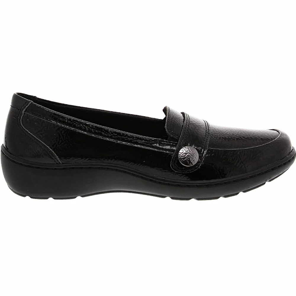Clarks Cora Daisy Slip on Casual Shoes – Womens. A sophisticated take on casual loafers, these womens casual shoes are easily a closet staple. The Clarks Cora Daisy slip-on shoe is great for barefoot wear, with its moisture-wicking Ortholite footbed. It slides on easily with its slip-on design and hidden elastic gores for a comfortable fit. With a synthetic full-grain leather upper and decorative detailed strap, the Cora Daisy takes any casual outfit up a notch.