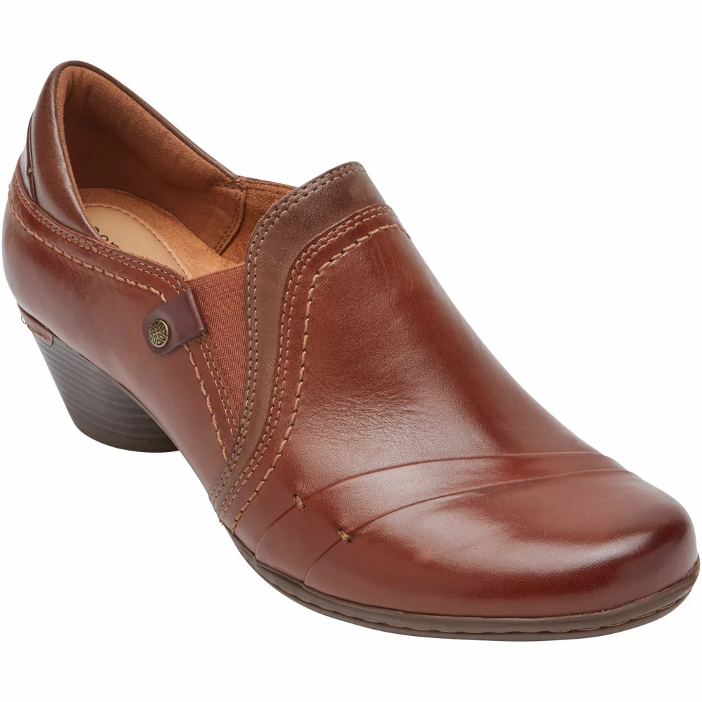 These versatile womens casual dress shoes pair well with your daily looks. Crafted with luxurious burnished leather and hand-stitched detailing, Cobb Hill’s Laurel slip-on is an easy shoe closet staple. With its classic silhouette and kitty-heel height, this slip-on shoe elevates your daily work look.