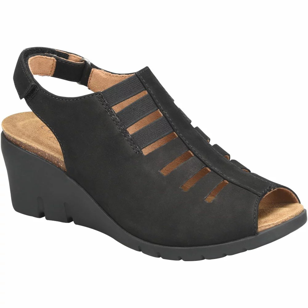Welcome warm weather and show off your style in these womens casual shoes. Featuring peep toes and classy straps, they have a modern and trendy flair. The soft leather upper has an elastic gore for flexibility and an adjustable heel strap to get a personalized fit. These wedges have a memory foam footbed that is lined with breathable suede and a durable synthetic outsole that keeps up with your busy day and night.