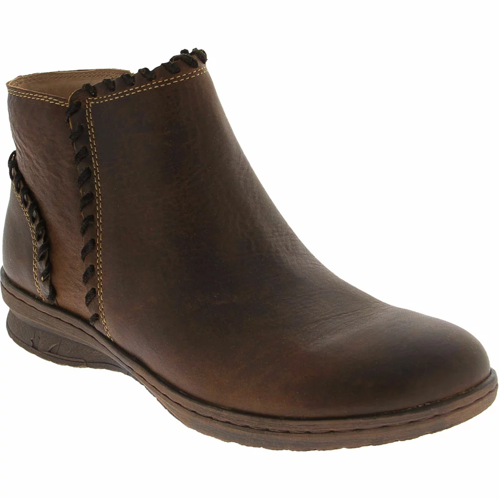 Comfortiva Fallston Casual Boots – Womens. Soft leather in a rich shade of brown is the base for the Fallston boots from Comfortiva. These ankle boots are set apart by the unique whipstitch detailing around the top, sides, and heel of the shoes. The wide suede stitching gives the leather a delicate, ruffled effect, which is a beautiful contrast to the Western-inspired silhouette. Your foot stays cushioned and supported with a memory foam footbed, textile lining, and a rubber outsole.