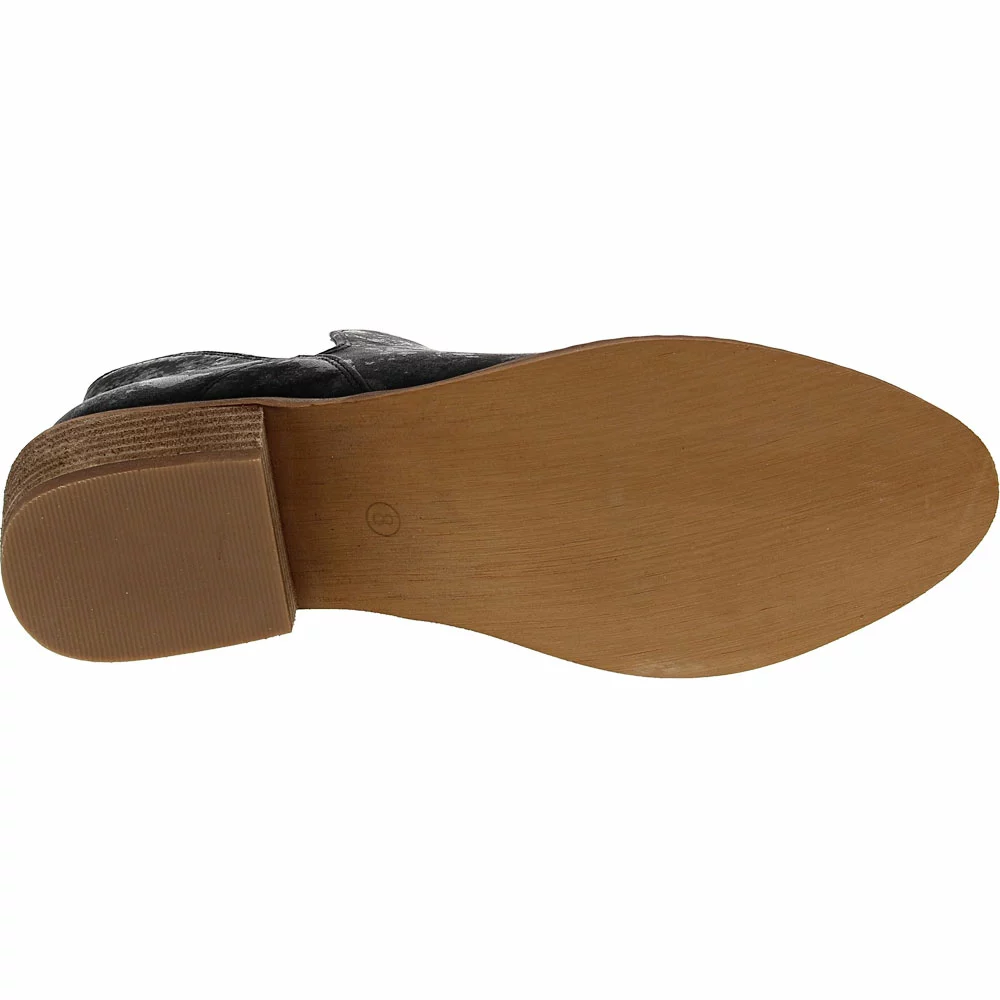 Corkys Wayland Ankle Boots – Womens. The Wayland from Corkys is simple and stylish. These womens ankle boots are versatile, pairing easily with any casual outfit in your closet. The faux leather upper looks great with jeans, skirts or dresses and has cutouts on each side that allow you to slip them on with ease. An EVA padded insole gives you cushioning and support, and the TPR outsole provides traction. The stacked heel is wide enough for easy movement while remaining fashionable.