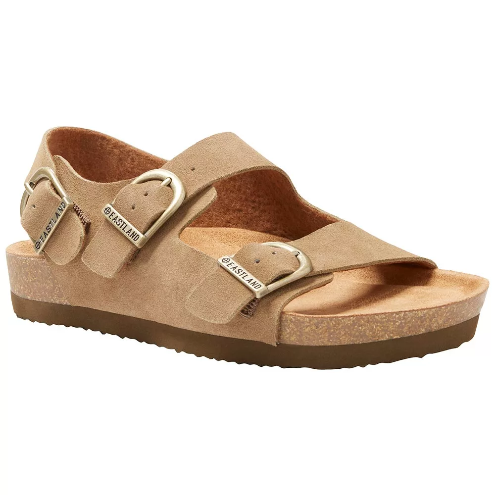 Eastland Charlestown Women’s Sandals. These womens sandals could be your new go-to shoes year-round. The Eastland Charlestown has a comfort insole made with Eastland’s Active Memory Foam that shapes to fit and support your foot. The double-strap design with genuine leather and suede is likely to be a hit with fashionistas of all kinds. Try a pair and experience the luxury you might have been missing out on.