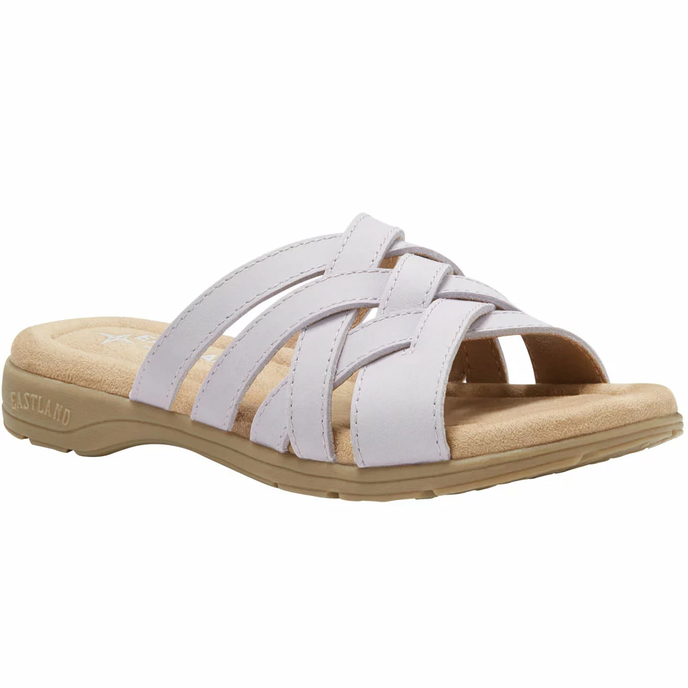 Eastland Hazel Slide Sandals for Women. The interwoven full grain leather straps on the top of the Eastland Hazel Slide Sandal will provide support and style all summer long. The comfortable insole is made of the Eastland exclusive Active Memory Foam. You can easily slip these sandals on and off thanks to the slide design, but you won’t slip on the ground thanks to the slip-resistant outsole.