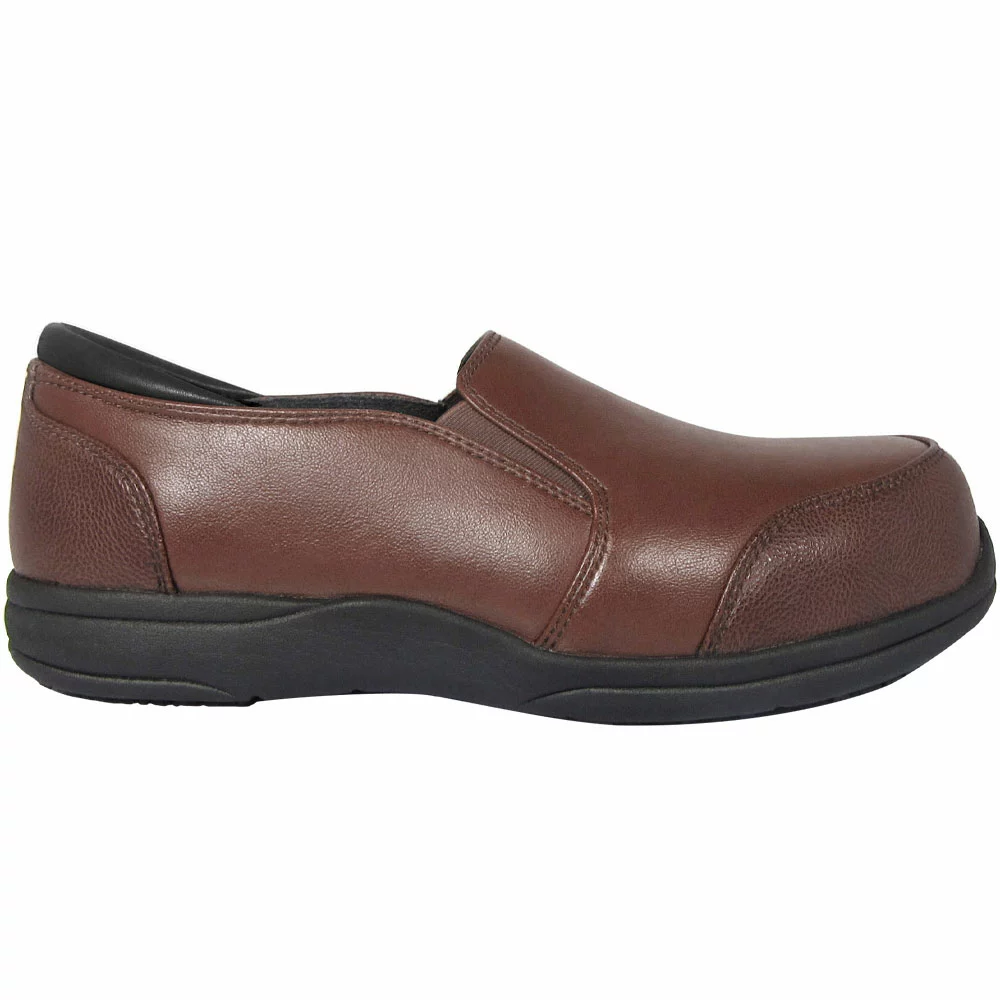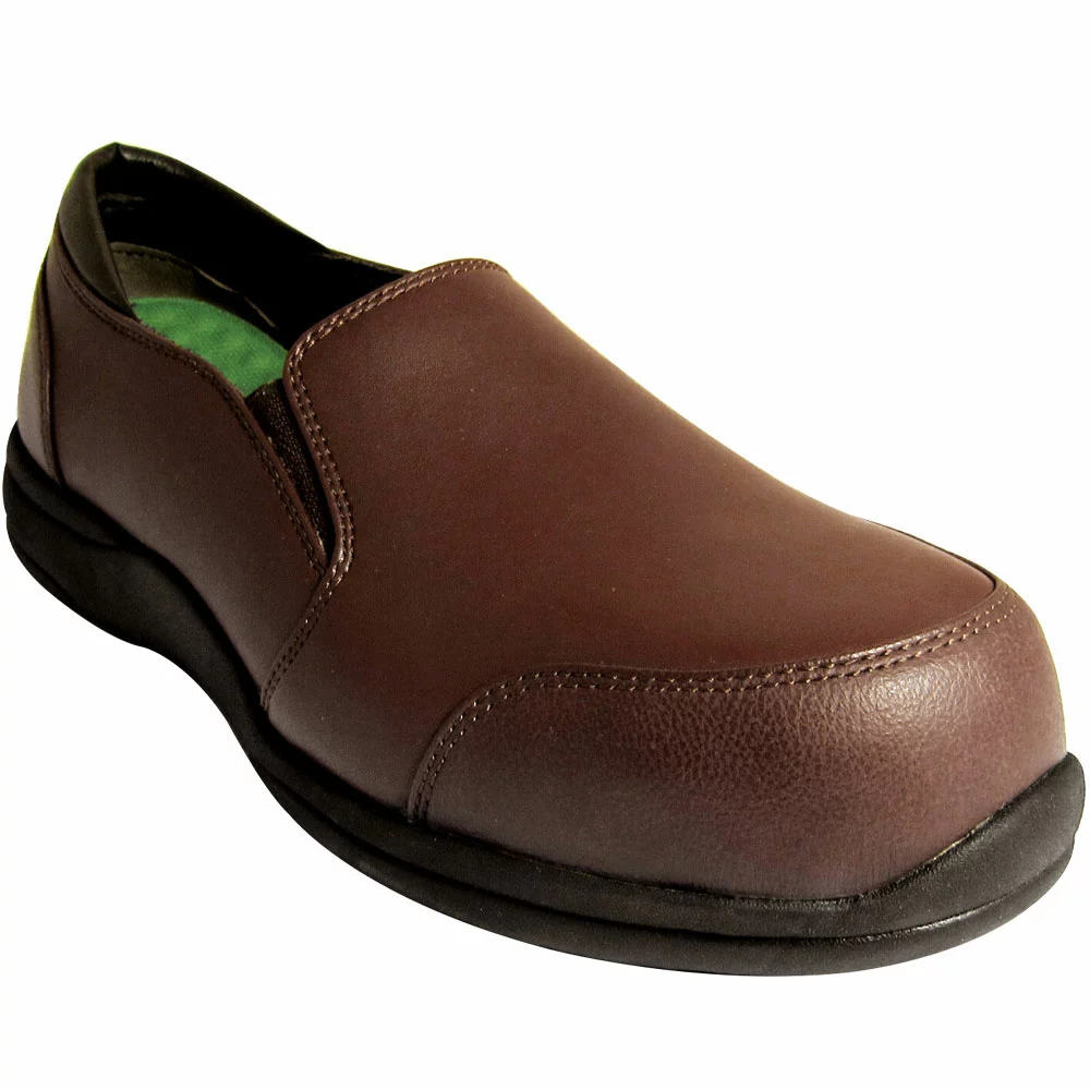 Genuine Grip 352 Composite Toe Work Shoes – Womens. Looking professional while staying protected is easy when wearing these womens composite toe work shoes. Stylish slip-ons that have the appeal of a casual work shoe while also providing toe and electrical hazard protection. The sleek microfiber upper features side gore panels for flexible, comfortable wear. A cushioned insole and foam midsole offer all-day comfort while the outsole provides grippy traction.