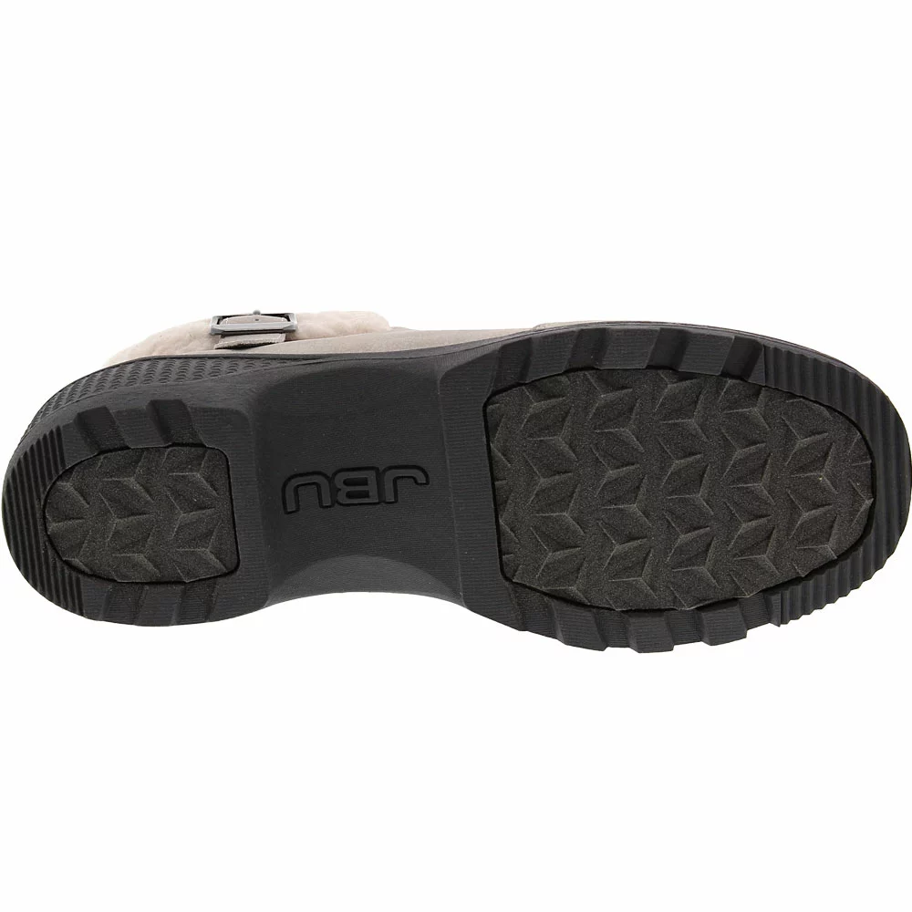 JBU Haven Water Resist Casual Boots – Womens. This cute little boot is coziness personified. JBU has pulled out all the stops with the Haven womens water resistant casual boots. The faux fur collar and buckle accent ensure that the Haven has a place in any stylish wardrobe. The heavy lug All Terra outsole provides traction on a variety of surfaces, wet or dry. Protecting your feet from inclement weather has never looked so good.