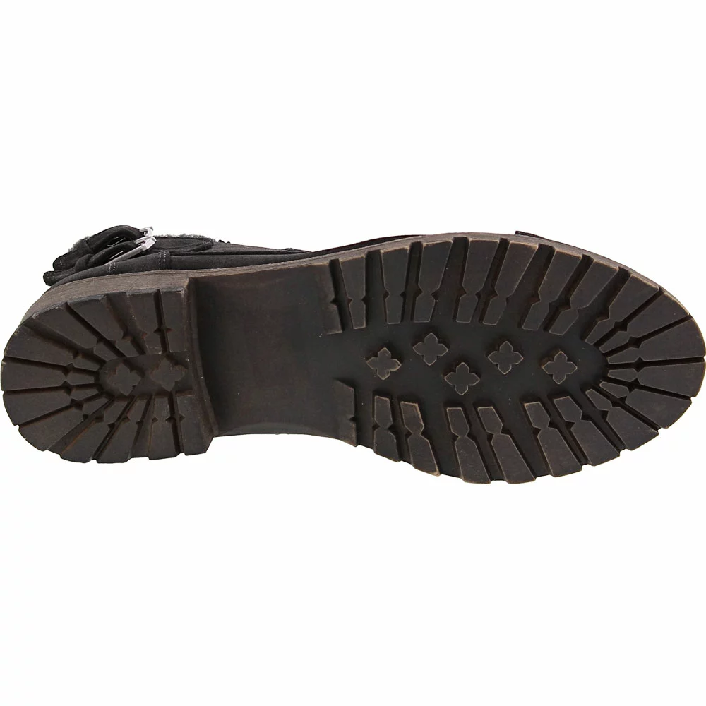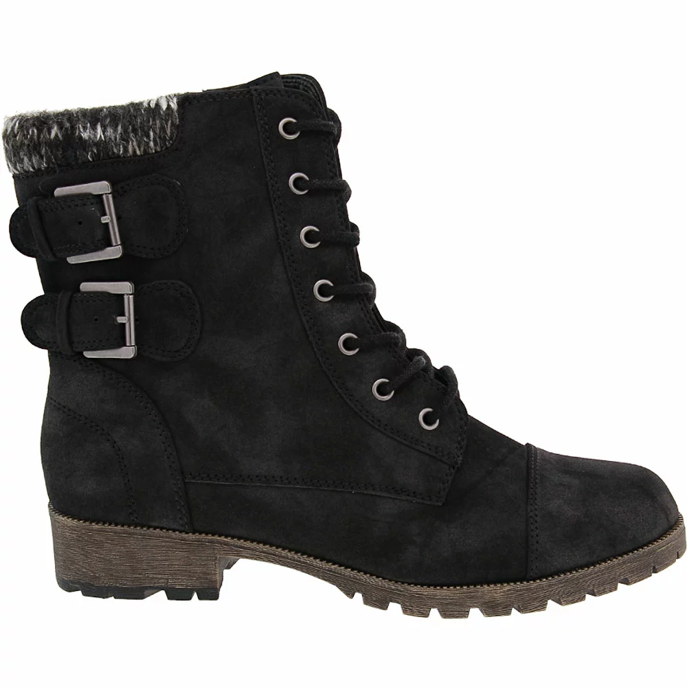 Jellypop Apollo Ankle Boots – Womens. Turn heads with the edgy look of these womens ankle boots. Combat boot style gets feminine accents with the soft knit cuff and buckled strap accents. The rugged TPR outsole provides superior traction while the cushioned latex foam insole keeps you comfortable on your feet. Zip closure with laces gives you a secure fit. These versatile boots pair well with a range of fall and winter fashions and look great with jeans, skirts and casual dresses.