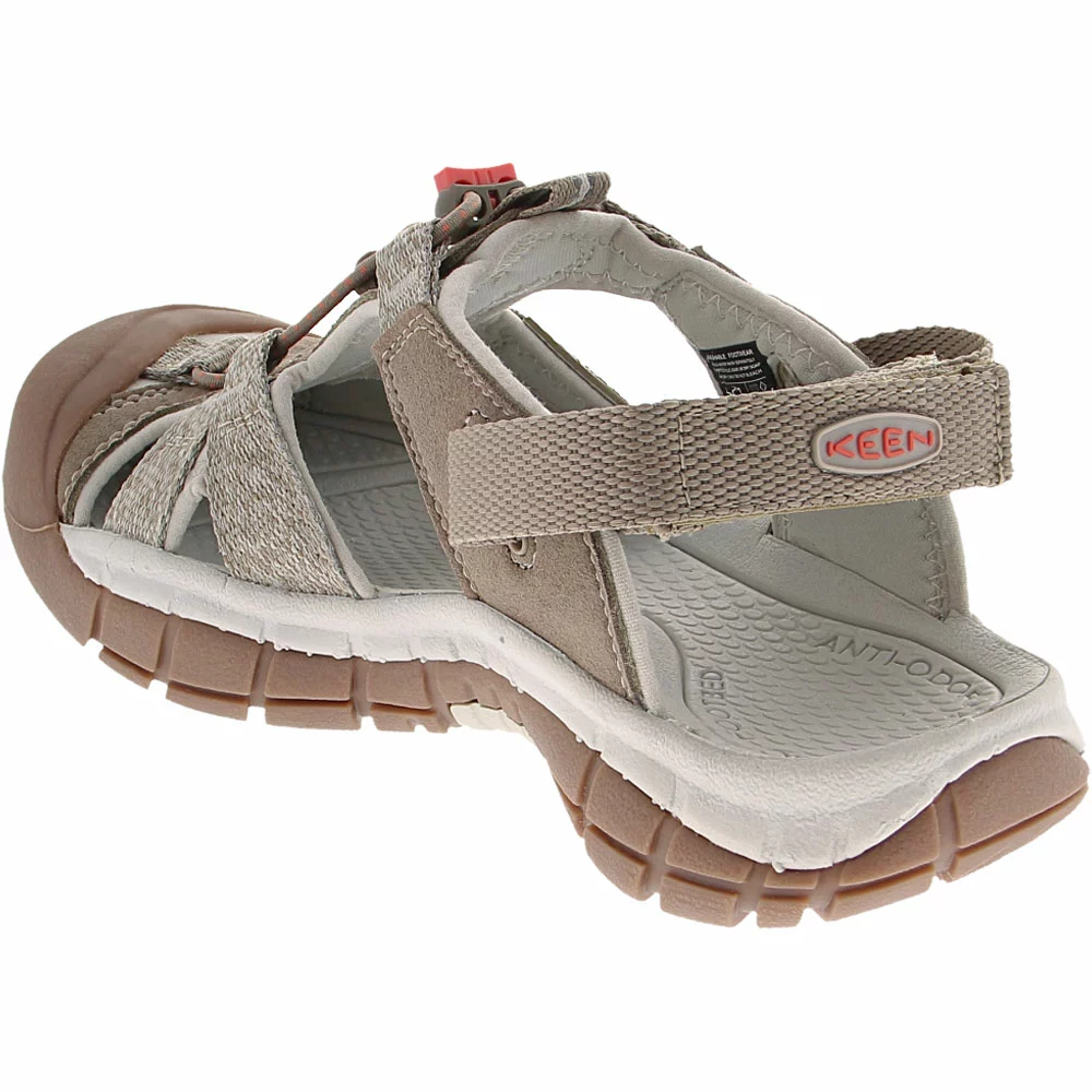 KEEN Ravine H2 Outdoor Sandals – Womens. Keen Womens Outdoor Sandals are always ready for adventure. The Ravine H2 sandals are crafted with ultimate comfort in mind even in the most rugged of circumstances. Precise balance and durability provide support in the soles to keep your feet safe and steady on outdoor escapades. The specialized toe cap and water-resistant lining make these the perfect all-terrain protection. Slip them on easily thanks to the customizable bungee lace capture system and new adjustable back strap.