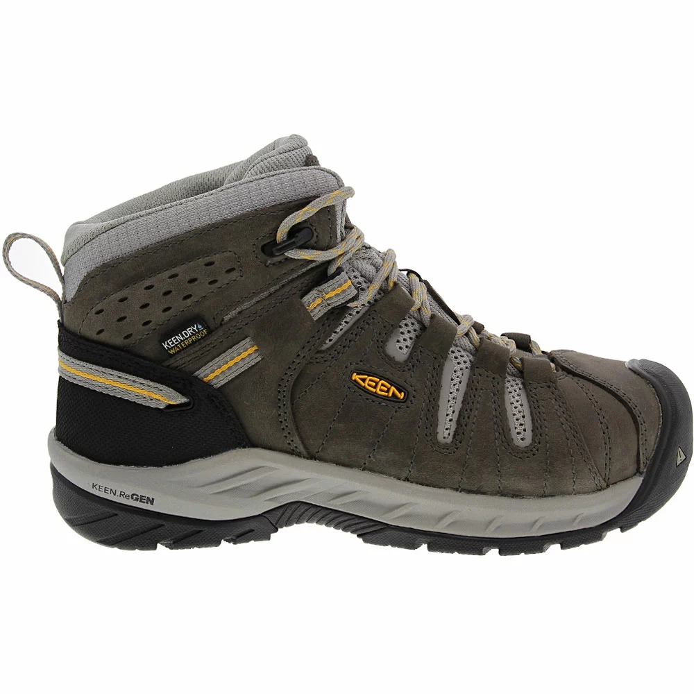 Enjoy all-day comfort on the job with KEEN Utility’s Flint II Waterproof womens safety toe work boots. The Flint II workboot combines water-resistant leather uppers with KEEN.Dry waterproof breathable membranes. KEEN’s ReGEN midsoles fight foot fatigue with compression-resistant foam providing up to 50% more energy return than regular EVA foam. Oil- and slip-resistant non-marking outsoles give you sure footing on slick surfaces.