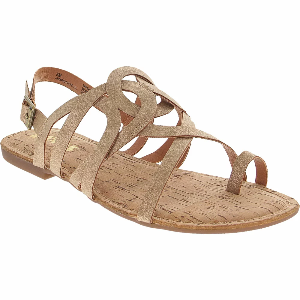 Korks Sangria Sandals – Womens. Add stylish flair to your favorite warm-weather ensembles by wearing a pair of these womens sandals. Strappy and fun, they let you show off some of your wild side while still being modern, classy and spirited. They have a gladiator-like upper with entwining straps, including a separate toe strap, and buckle closure. Designed to be lightweight and flexible, they have a cushioned cork footbed with a breathable liner and a durable rubber outsole with slip-resistant treads.