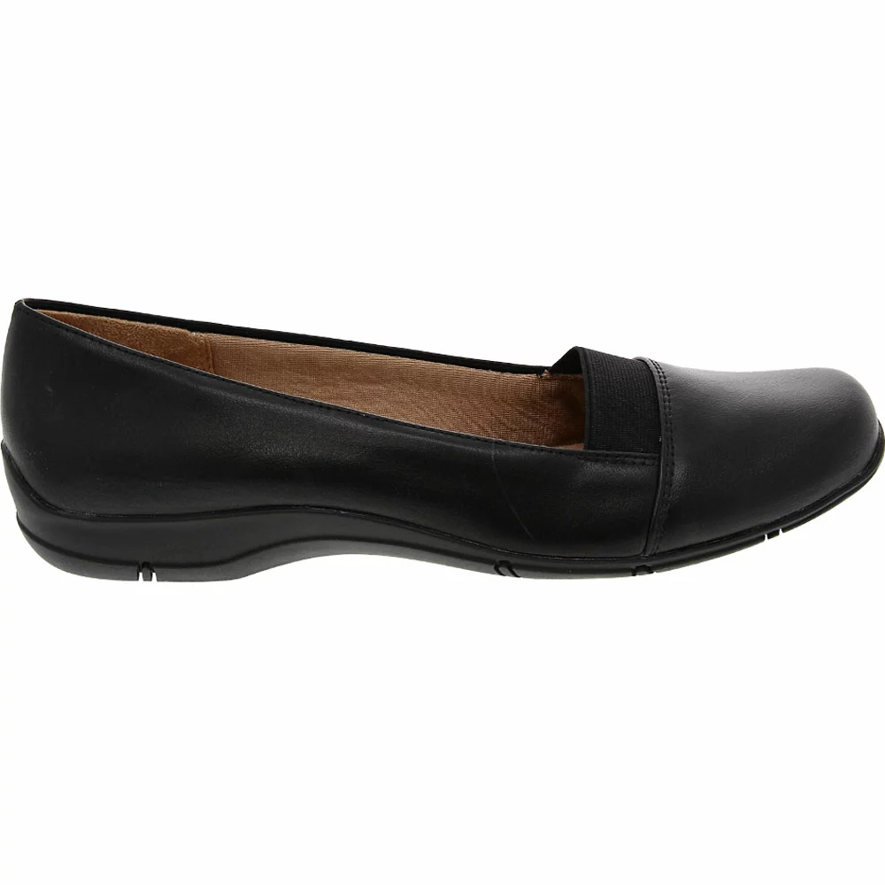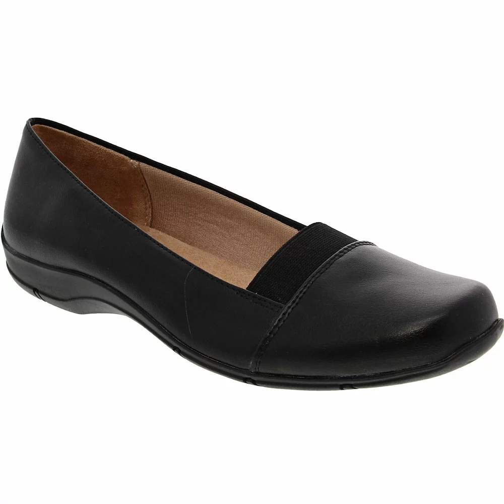 Life Stride Doris Casual Dress Shoes – Womens. Comfort and style collide to create the perfect everyday womens casual shoes. These sleek flats are versatile enough for relaxed days or work well with dressier ensembles. They have a faux-leather upper with a square toe. An elastic gore panel on the forefoot makes them easy to put on and take off, as well as provides flexibility while on the go. A softly lined interior and foam footbed cushion every step while the durable outsole offers traction when needed.