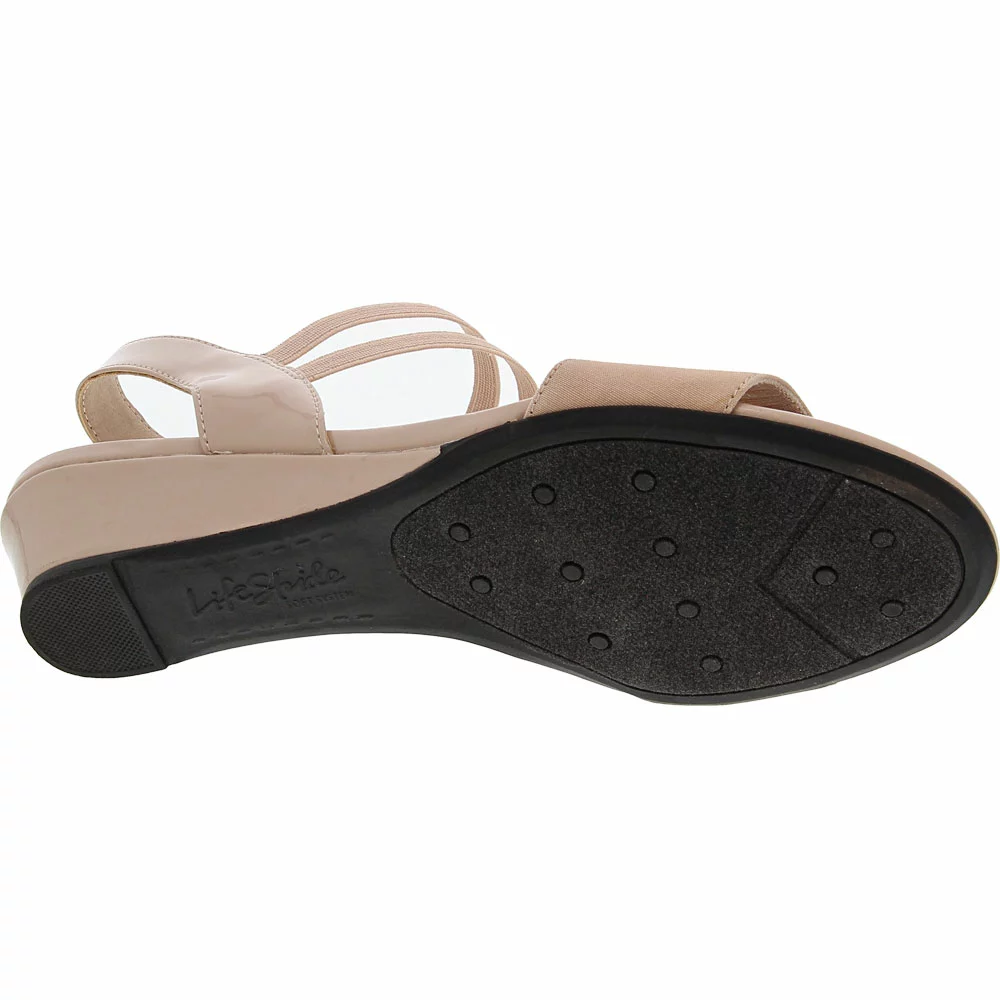 Life Stride Yolo Sandals – Womens. Warmer weather is coming. Make sure you’re ready for it with Life Stride Yolo womens sandals. The Yolo may very well be the only sandal you’ll need for the season, thanks to its versatile styling. The fabric upper has a clean, elegant look with a mixture of wide and skinny straps. It’s dressy enough to go with your pretty summer skirts, yet will still pair nicely with shorts or capris.