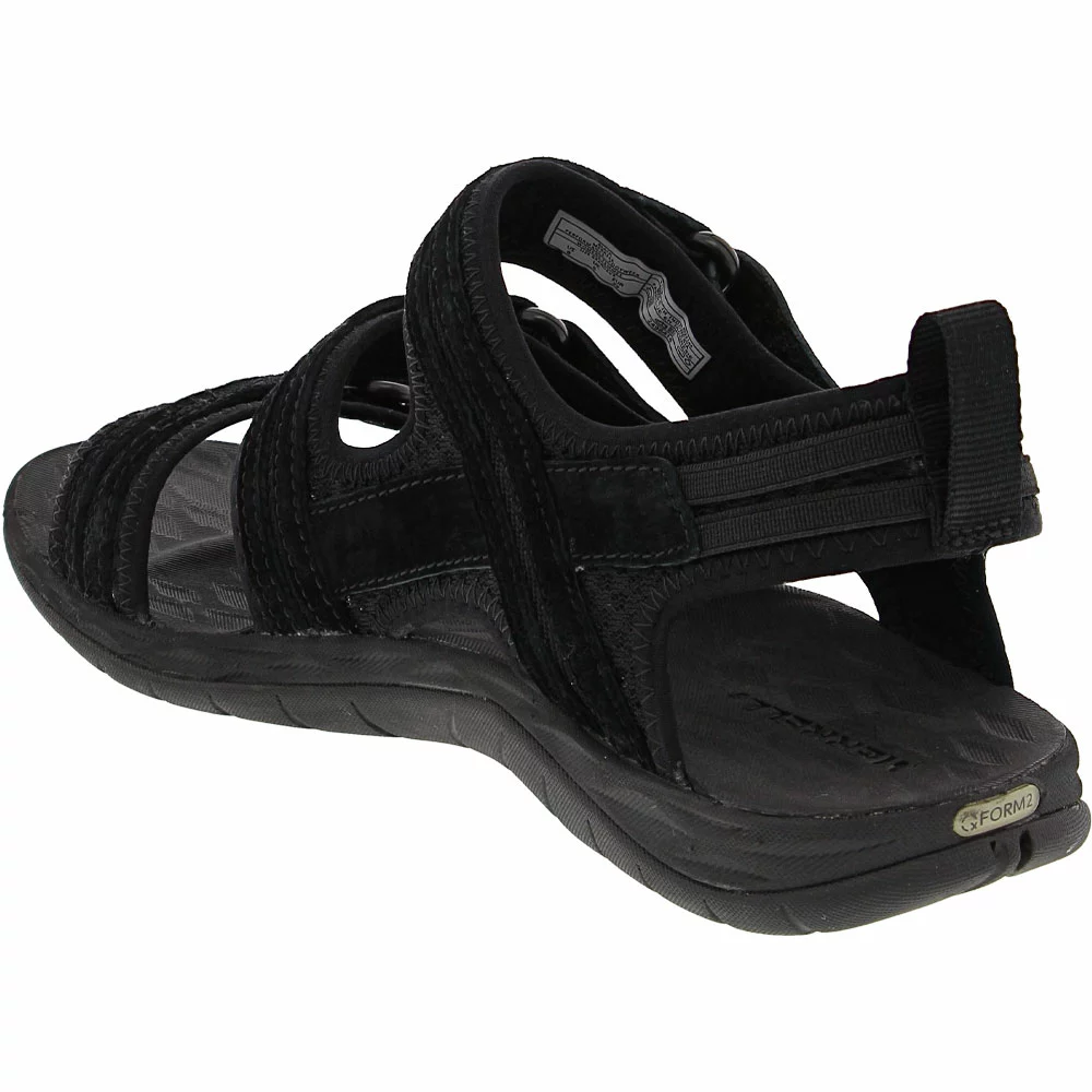 Merrell Siren 2 Strap Sandals – Womens. Hot days don’t have to mean hot feet when wearing these womens sandals. Designed for high-performance, they have a sleek, sporty style and are made to handle hiking, running or walking. The stylish suede and mesh upper has two forefoot straps and an ankle strap with an adjustable closure. Rugged yet lightweight, a padded footbed and dual-density midsole cushion and support each step. No matter the terrain, the lugged outsole offers grippy traction.