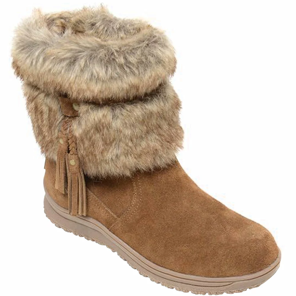 Minnetonka Everett Comfort Winter Boots – Womens. Fire up your snow shoe collection with the Minnetonka Everett Comfort Winter boot. With layers of luxurious faux fur wrapped with a braided tie, this boot will turn heads as your shoe tassels swing with each step. This stylish boot not only goes with any outfit, it is water-repellant and can withstand the wintery months. With its sleek design, these womens winter boots are an easy choice.
