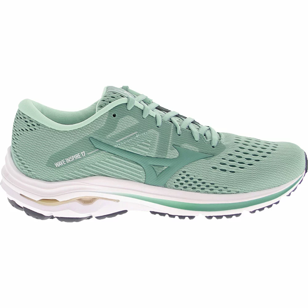 Mizuno Inspire 17 Running Shoes – Womens. Take your running game to the next level with help from Mizuno Inspire 17 womens running shoes. Designed to take seconds off your time, the foam heel wedge returns energy to your stride. The new midsole offers maximum impact protection from hard or uneven track surfaces. With a durable carbon rubber outsole, the Inspire 17 will add miles and miles to your running routine before they wear out.