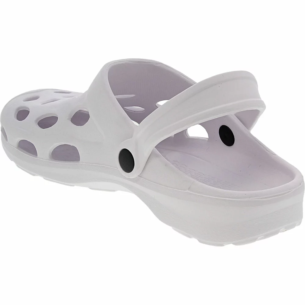 Tackle warm-weather adventures with confidence in these womens water sandals. Made with lightweight, flexible EVA, they cushion every step while offering the durability needed whether on dry land or water. These breathable, easy-to-clean sandals have a modern, trendy yet versatile clog silhouette. Vent holes on the upper keep feet cool and ensure water drains quickly. They have a durable outsole that provides traction when needed.