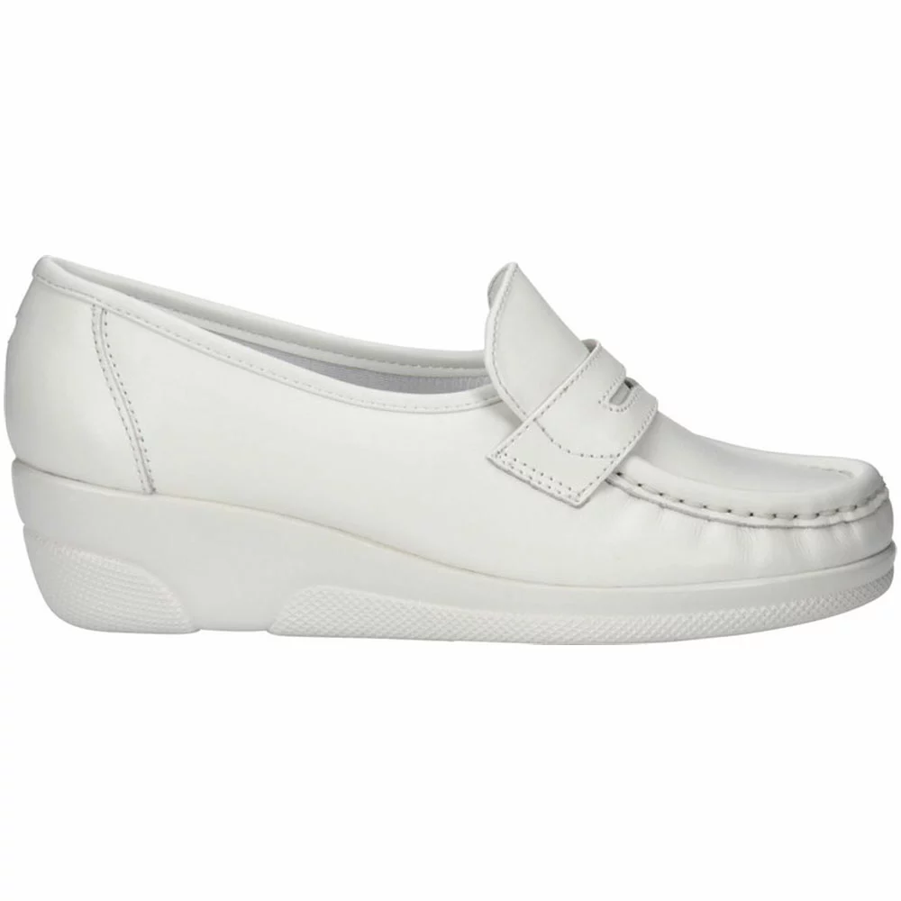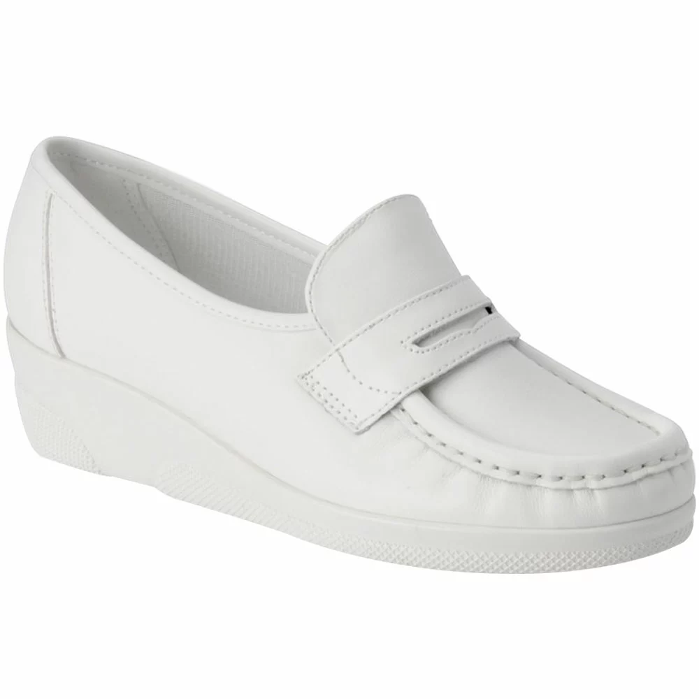 Nurse Mates Pennie Womens Slip On Nursing Shoes. Increase your efficiency in the Nurse Mates Pennie slip on. Genuine leather uppers with stain resistant finish. Soft, padded lining inside provides a little bit of cushioning. The polyurethane sole is shock-absorbing for all-day comfort.
