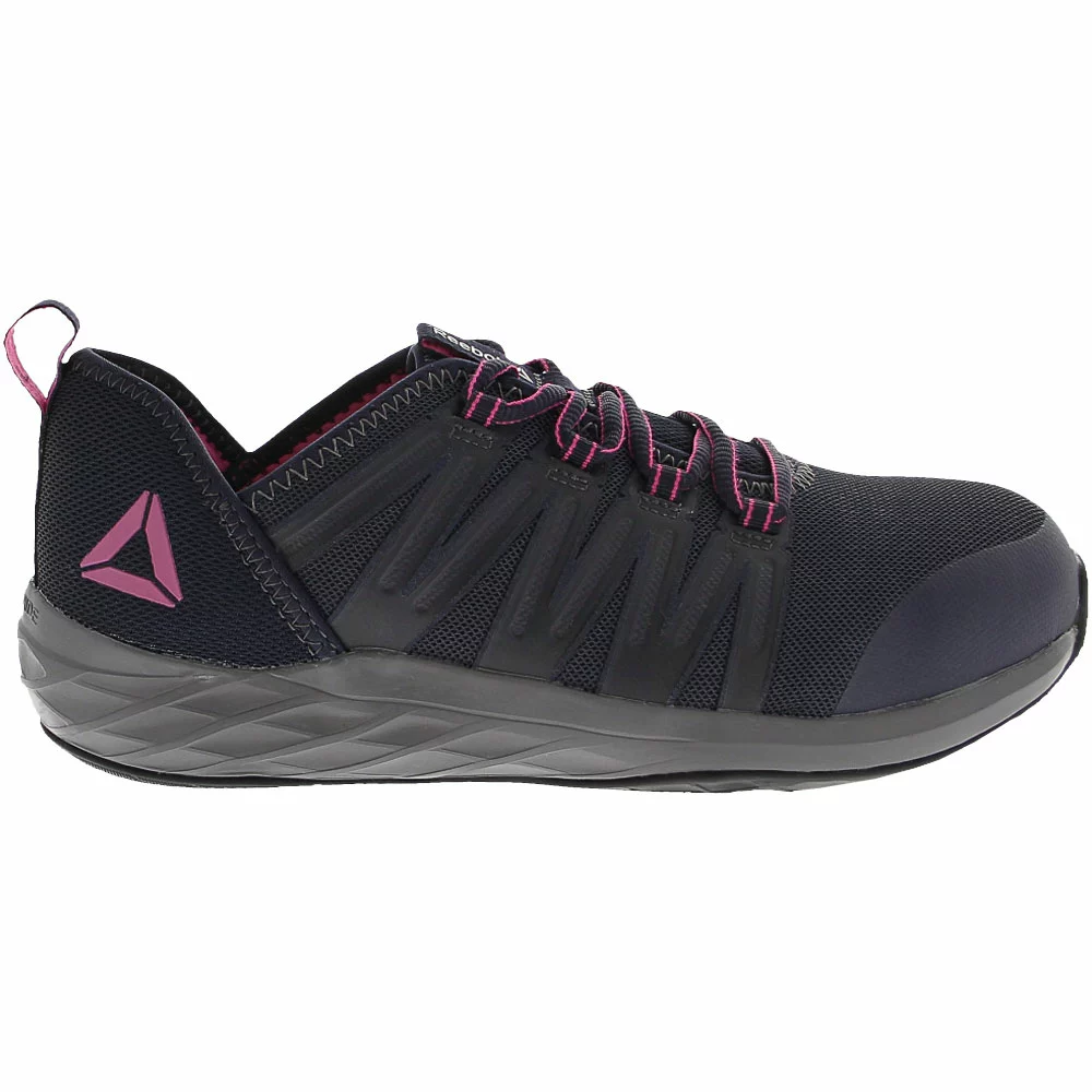 Reebok Work Astroride Women’s Composite Toe Work Shoes. Ideal work focus starts with quality footwear, and Reebok’s Astroride Steel Toe Shoe delivers comfortable protection you are going to love. It all starts with a MemoryTech footbed, which is removable at your discretion. The cushy midsole and anti-slip outsole are crafted from superlight ASTROFOAM material, providing you traction and springy rebound for resilience that lasts. Finally, ghillie laces work with the quick-fit heel style for convenience and a confident fit.