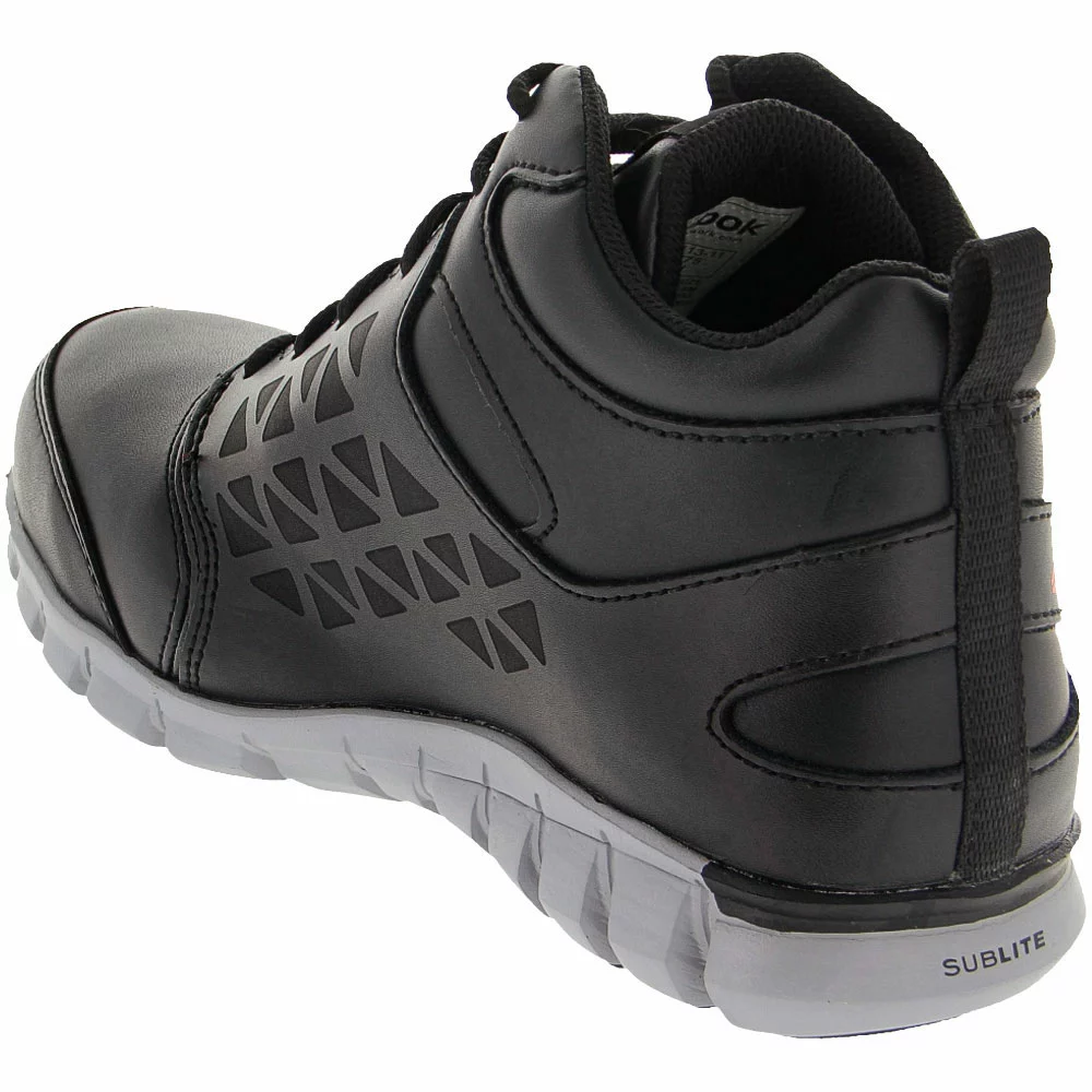 Reebok Work Sublite Metguard Mid Women’s Safety Toe Work Shoes. Get the benefits of sporty sneakers with the protection you need at work with Reebok’s Sublite Womens Alloy Toe Work Shoe. It is an athletic option crafted from real leather, with a cushioned EVA midsole and mesh liner that wicks away moisture to keep you fresh. The rubber-EVA combination outsole resists slips and oily slicks. The MemoryTech delivers the comfort you need to remain focused on the job.