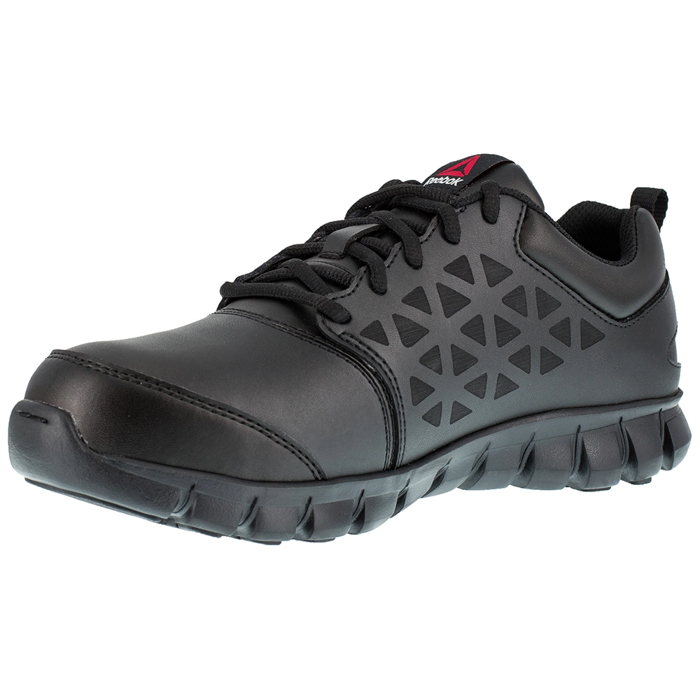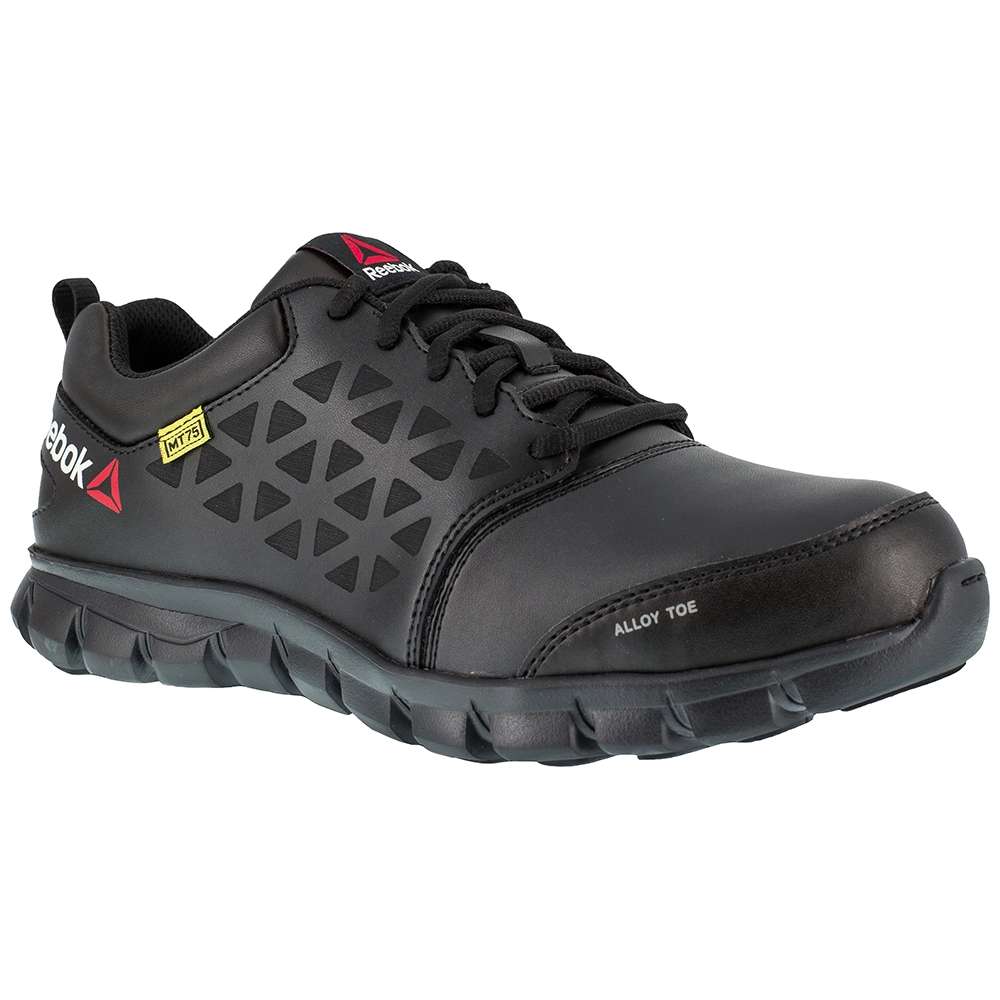 Reebok Work Sublite Metguard Low Women’s Safety Toe Work Shoes. You are well protected, comfortable and focused on the job when you lace up the Sublite Cushion Alloy Toe Work Shoe by Reebok. It keeps you safe, with rated defenses against electrical hazards, slips, chemicals, oils and abrasions. Nylon mesh lining wicks foot moisture away to keep you fresh, and a MemoryTech footbed offers generous cushioning for reliable resilience.