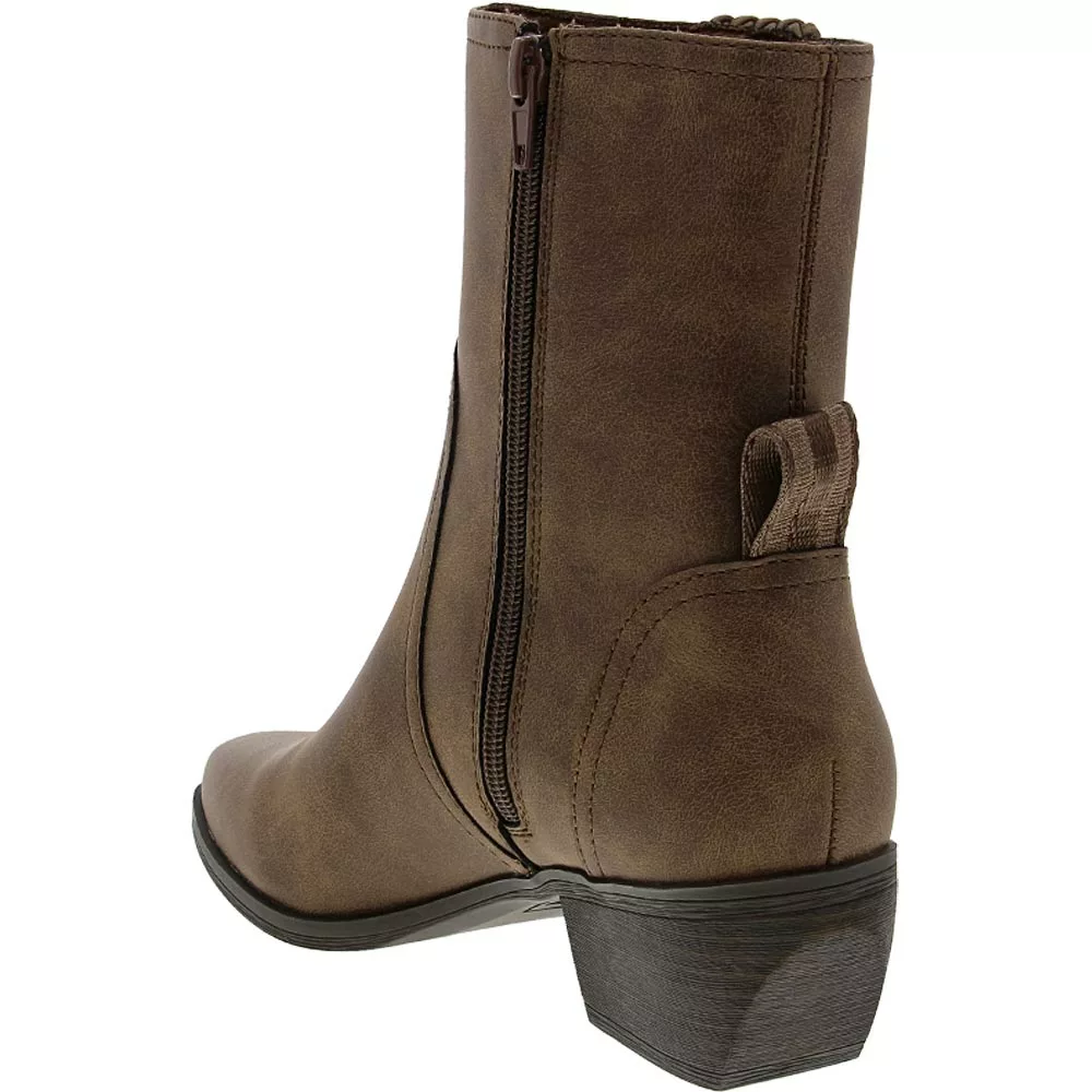 Add western flair to your look while exuding classy sophistication by wearing these womens casual boots. Trendy ankle boots with a classic silhouette that has a modern vibe thanks to a braided strap and metallic buckle on the side. Featuring a hidden side zipper and a memory foam insole that keeps feet cushioned and comfortable all day. The block heel gives you a touch of height while the rubber outsole offers optimal traction.