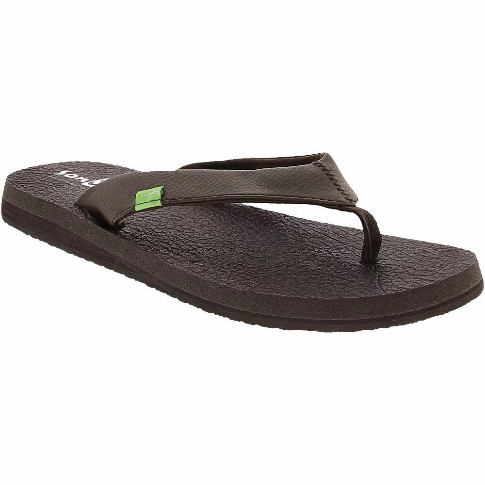 Sanuk Yoga Mat Daily Women’s Flip Flops. Are you looking for a pair of comfy, cushy flip flops for the warm-weather season? These sandals from Sanuk might be just what you need. The straps are made of synthetic leather and are a medium width for a shoe that is neither too dainty nor too sturdy. They are lined in a soft jersey fabric. Recycled yoga mats form the plush footbed, which is thick, cushioned, and feels great under your feet.