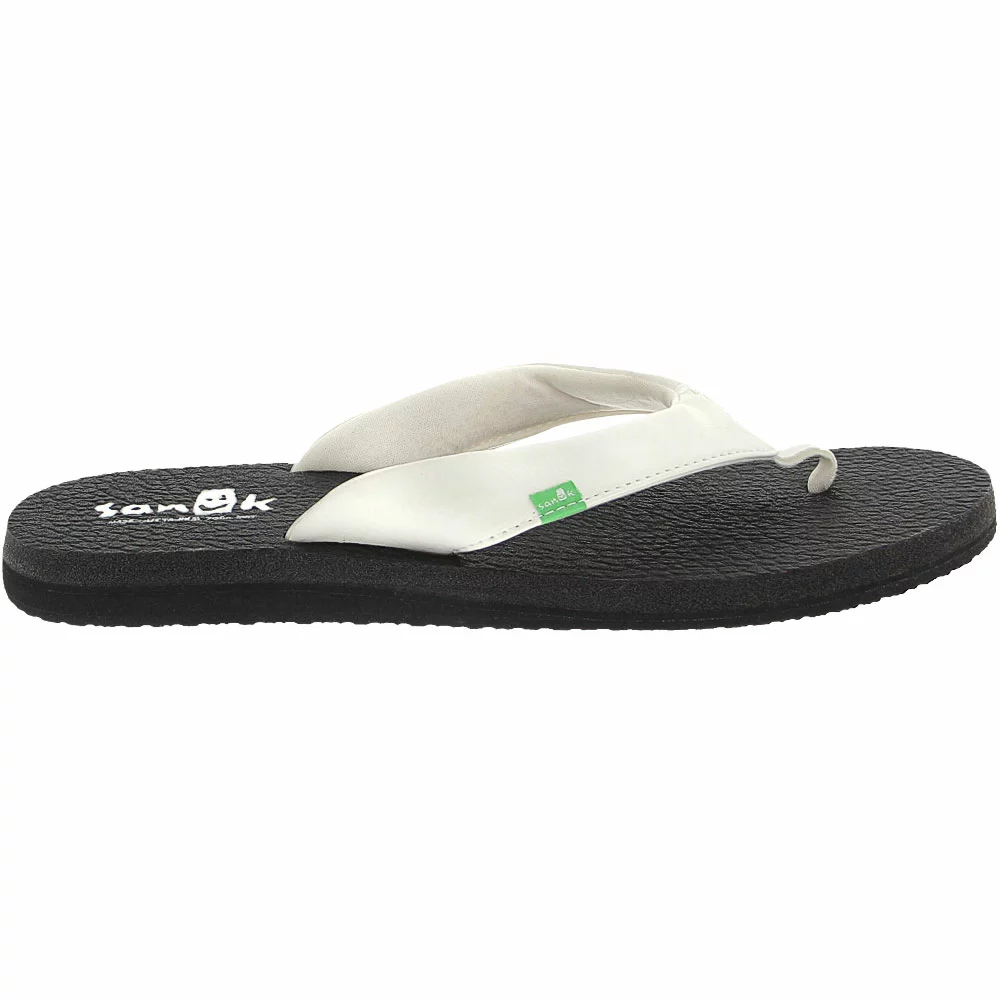 Sanuk Yoga Mat Daily Women’s Flip Flops. Are you looking for a pair of comfy, cushy flip flops for the warm-weather season? These sandals from Sanuk might be just what you need. The straps are made of synthetic leather and are a medium width for a shoe that is neither too dainty nor too sturdy. They are lined in a soft jersey fabric. Recycled yoga mats form the plush footbed, which is thick, cushioned, and feels great under your feet.