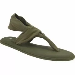 Sanuk Yoga Sling 2 Women’s Thong Sandals. Head outside with the Sanuk Yoga Sling 2 sandal. For comfort, this sandal provides you with a lightweight, two way stretch knit fabric upper. The footbed is made from real yoga mat with a sealed edge and stitch detail. Get traction and durability with the Happy U sponge rubber outsole.