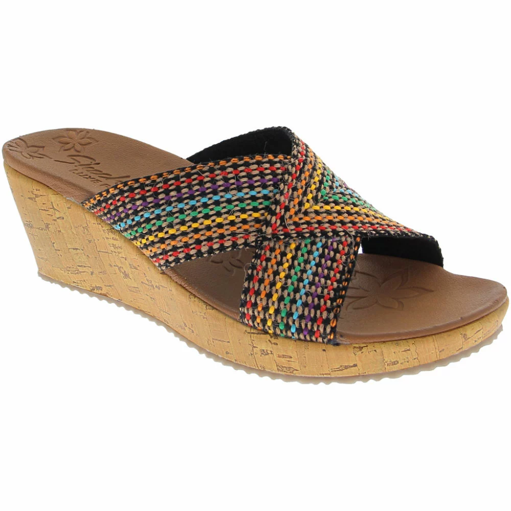 Skechers Beverlee Delight Women’s Sandals. If you are a hippie at heart, these boho-chic sandals are a wardrobe must-have. The multicolored woven upper allows for easy pairing with your favorite flowy dress. Your feet will be blissfully happy with the arch support provided by the contoured SKECHERS Luxe Foam cushioned footbed. The soft, woven fiber upper and grippy, flexible outsole will keep you confident and steady in these 2.25-inch natural cork veneer wedges.
