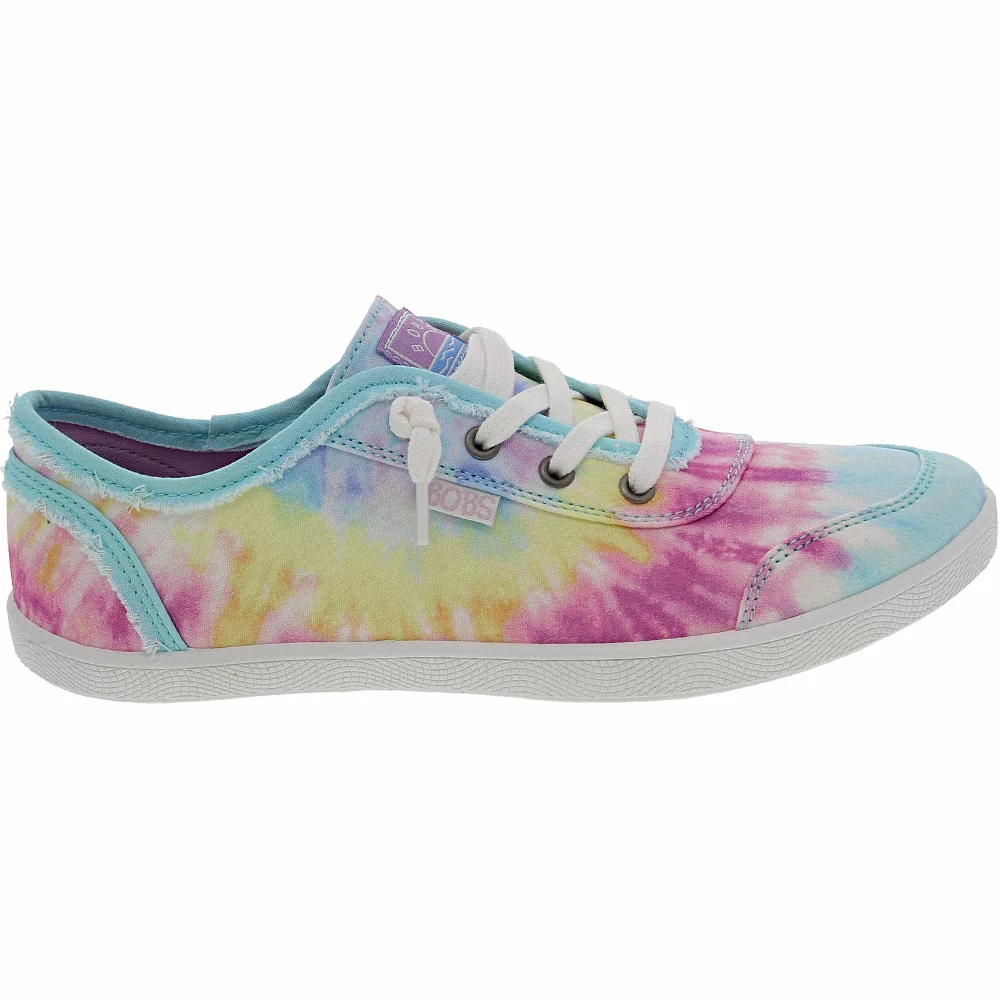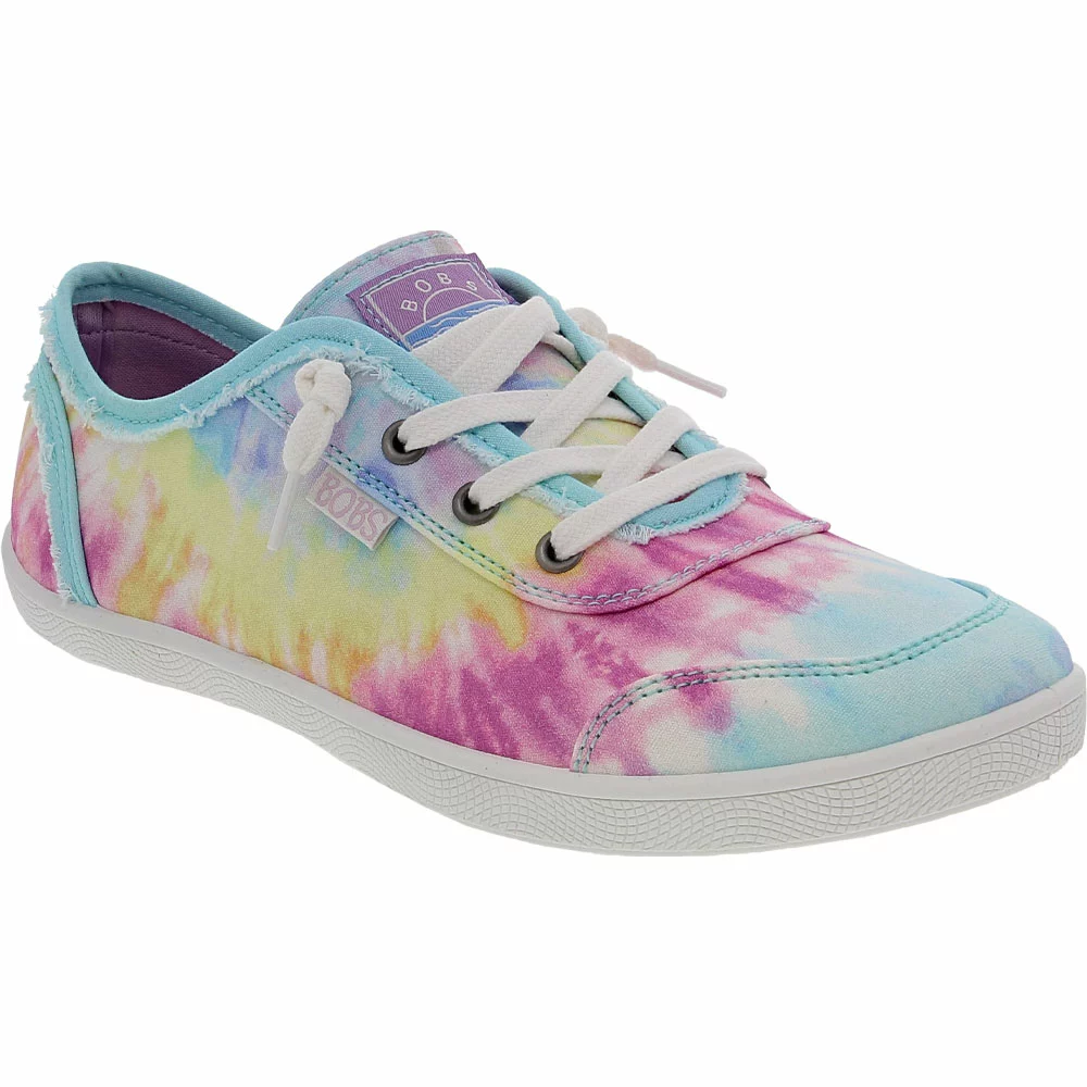 Kick uncomfortable footwear to the curb and instead step out in oh-so-cute comfort with Bobs B Cute Camp Color Womens Lifestyle Athletic Shoes from Skechers. Featuring an all-over and on-trend tie-dye design, the sneakers add a bright touch of fun color to any look. Cozy and cool canvas shoes are the epitome of easy summer style, and these ones truly do not disappoint thanks to comfortable memory foam cushioning.