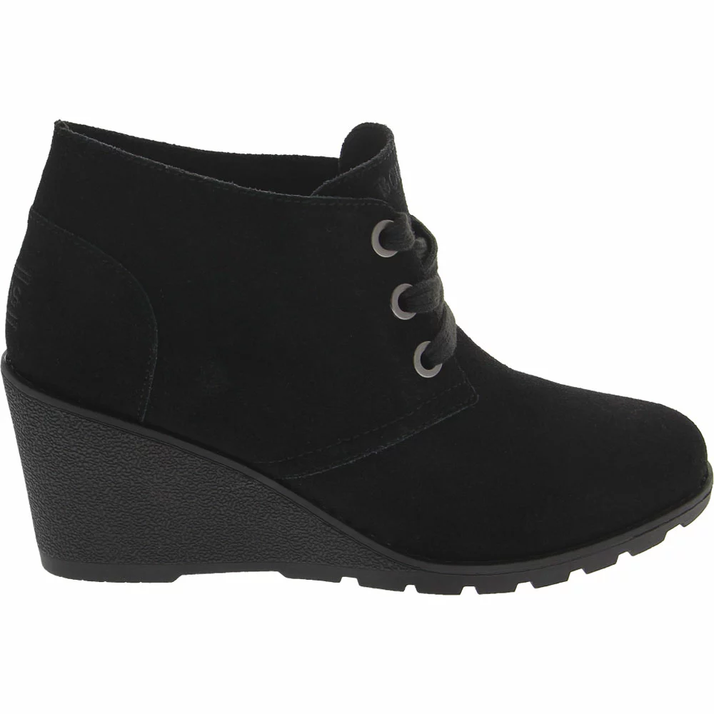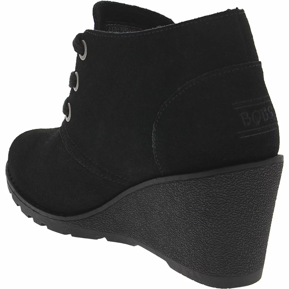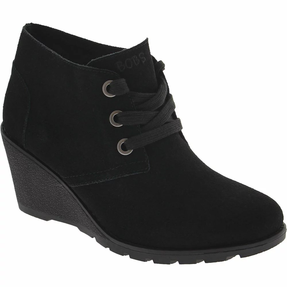 Skechers BOBS Tumble Weed – Ghost Town Casual Boots – Womens. BOBS Tumble Weed Ghost Town womens casual boots hit all the marks to provide both low-key comfort and cool style. Chukka-style ankle booties featuring a wedge heel that gives lift while remaining comfortable for jaunts around town. Crafted with soft and supple suede uppers that give this lace-up style a luxurious look and feel. Feet stay toasty when the mercury drops thanks to a soft lining comprised of lush faux fur.