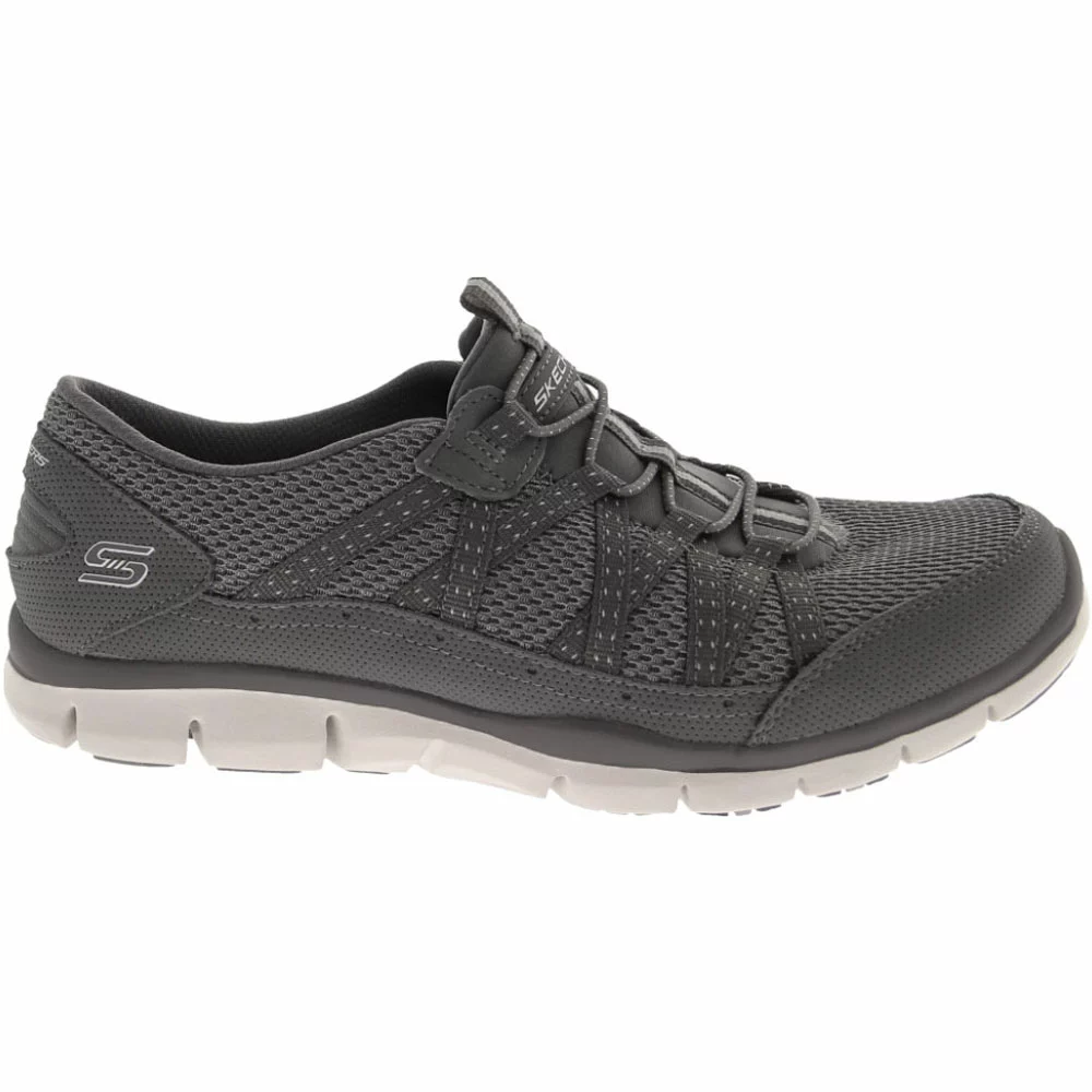 Skechers Gratis Strolling Women’s Life Style Shoes. Walking is a pleasure in these comfortable yet stylish walking shoes. The upper is mesh with perforated faux suede accents, offering breathability and a little cooling action. It also features a fabric overlay on the sides, creating the look of diamond-shaped cutouts for extra style. The midsole absorbs shock, and the insole is made of Air Cooled Memory Foam for comfort. These shoes have a slip-on construction with a bungee laced instep.