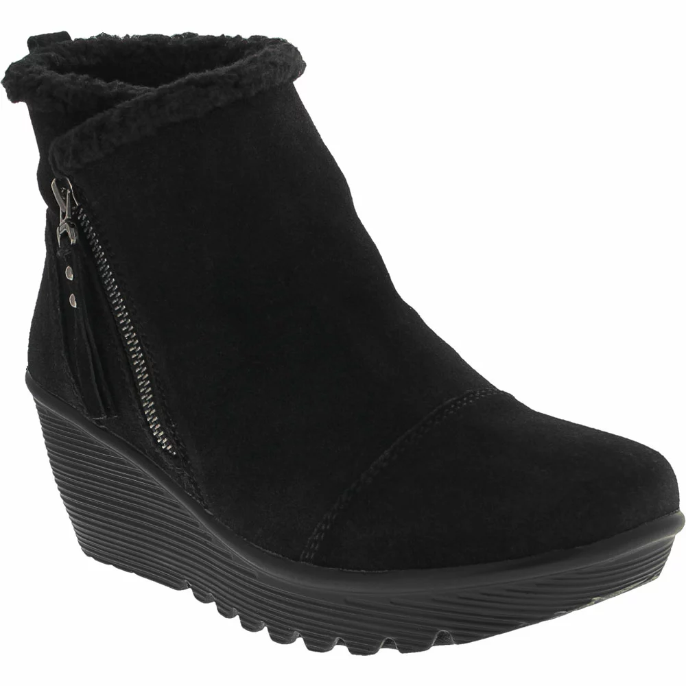 Skechers Parallel Off Hours Comfort Winter Boots. Parallel Off Hours womens winter boots from Skechers are the epitome of cold-weather style. Just because temps have taken a nosedive does not mean you have to resign yourself to footwear that is clunky and unattractive. Featuring a cute wedge heel, asymmetrical zipper details and soft, warm faux fur linings, the Parallel Off Hours boot seamlessly combines both stylishness and coziness.