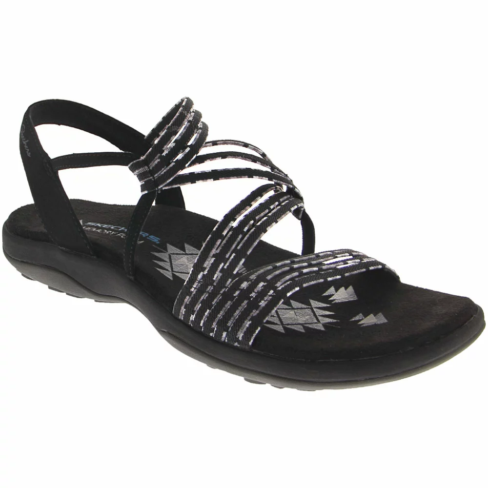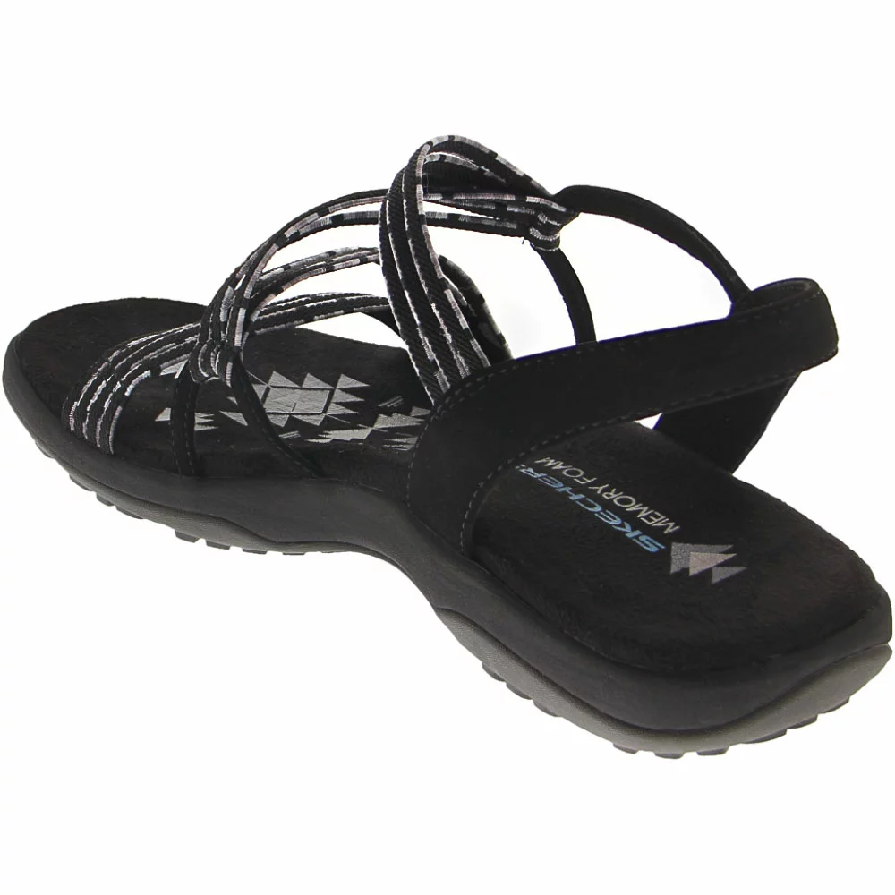Skechers Reggae Slim Stretch Women’s Sandals. Enjoy the signature comfort of Skechers memory foam in these cute and casual womens sandals. The Skechers Reggae Slim Sandal in Stretch Appeal is both stylish and sporty, making it the perfect choice for an outdoor adventure or your everyday errands. The thin, vibrant straps in a diagonal layout create a fun and flattering look while the heel sling strap offers extra security and stability.