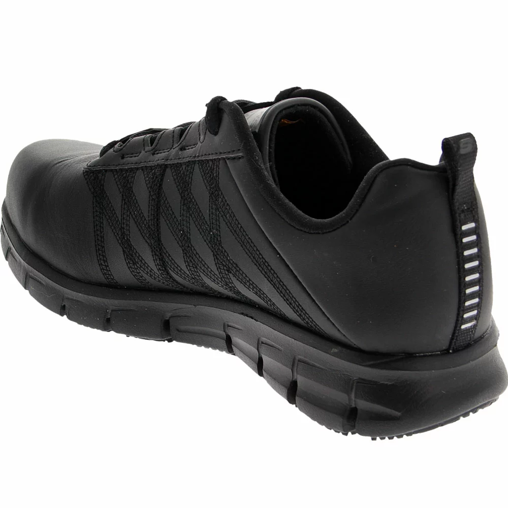 Skechers Work Martley Women’s Safety Toe Work Shoes. Look great and stay well protected when you choose the Sure Track Martley Steel Toe Shoe from Skechers’ Work collection. Supple leather makes for high-quality uppers, while FlexSole technology works to limit underfoot shock. A rugged rubber outsole grips varied surface types with confidence, as the padded tongue and collar protect against fatigue during long days on your feet.
