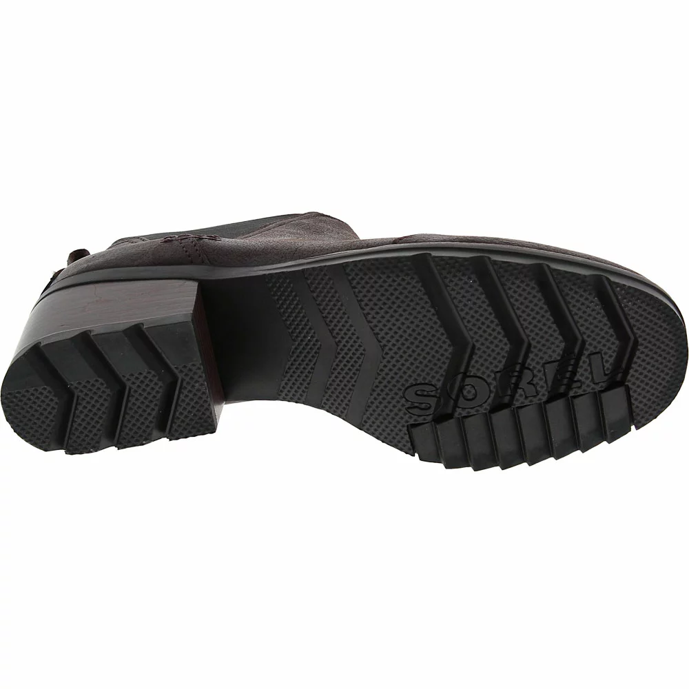 Sorel Cate Chelsea Ankle Boots – Womens. These womens ankle boots make being weather-resistant trendy and chic. Easy to slip on and off, the soft leather upper features elastic gore panels, pull-tabs on the back and stylish stitching that add to their comfort and appeal. Your feet will be kept cushioned all day thanks to a lightweight EVA footbed that is removable. The leather-lined block heel gives a classy flair that is complemented by a durable outsole designed for traction.